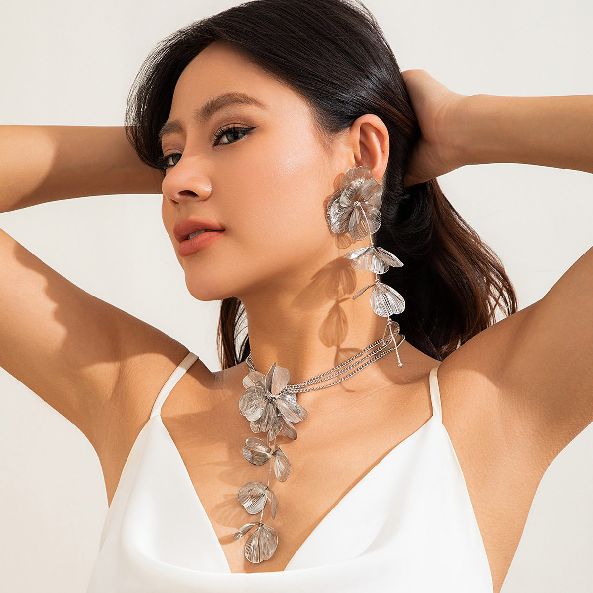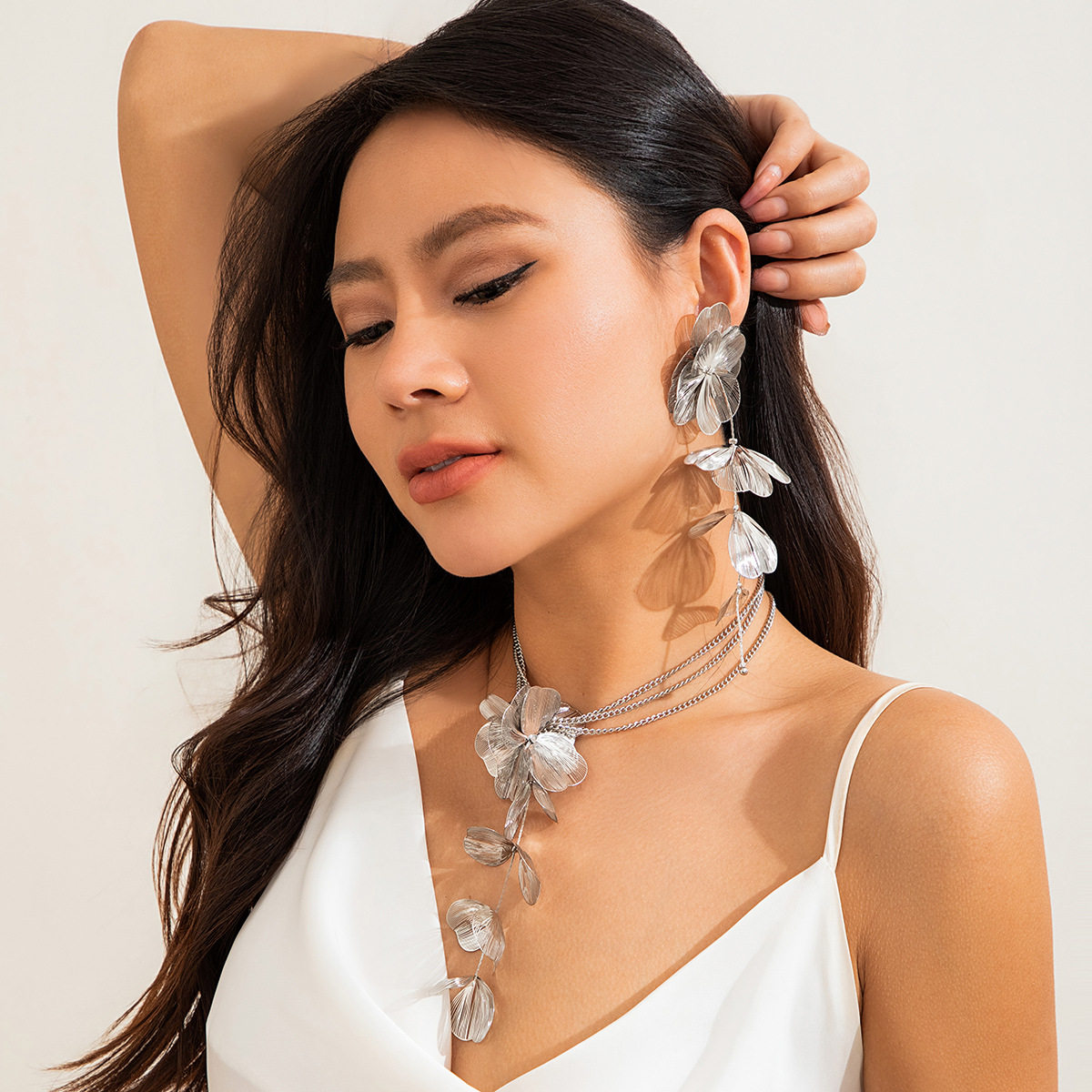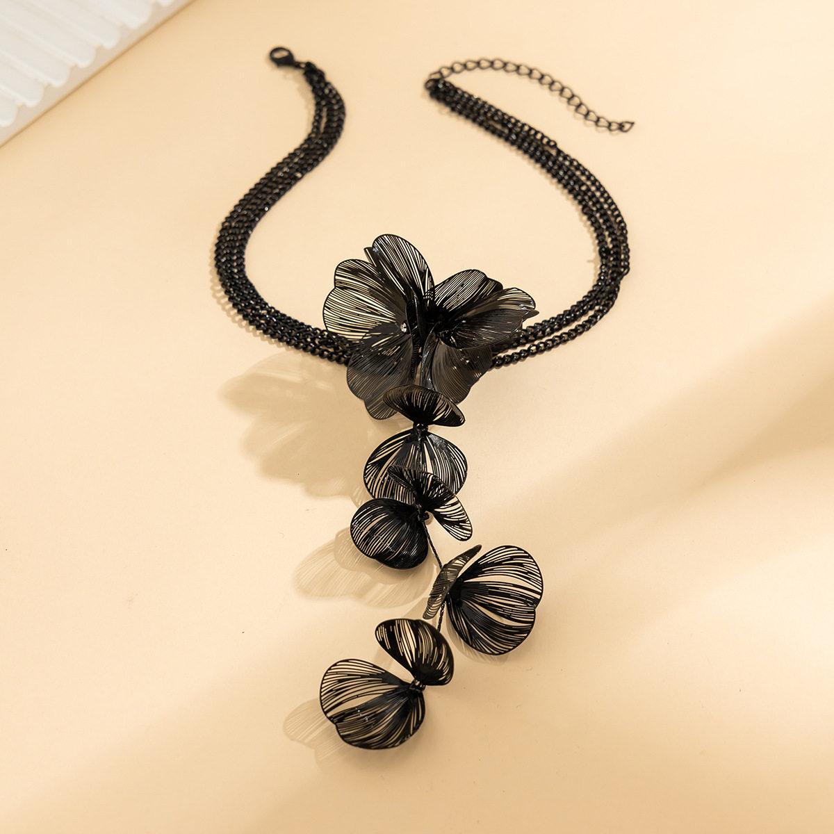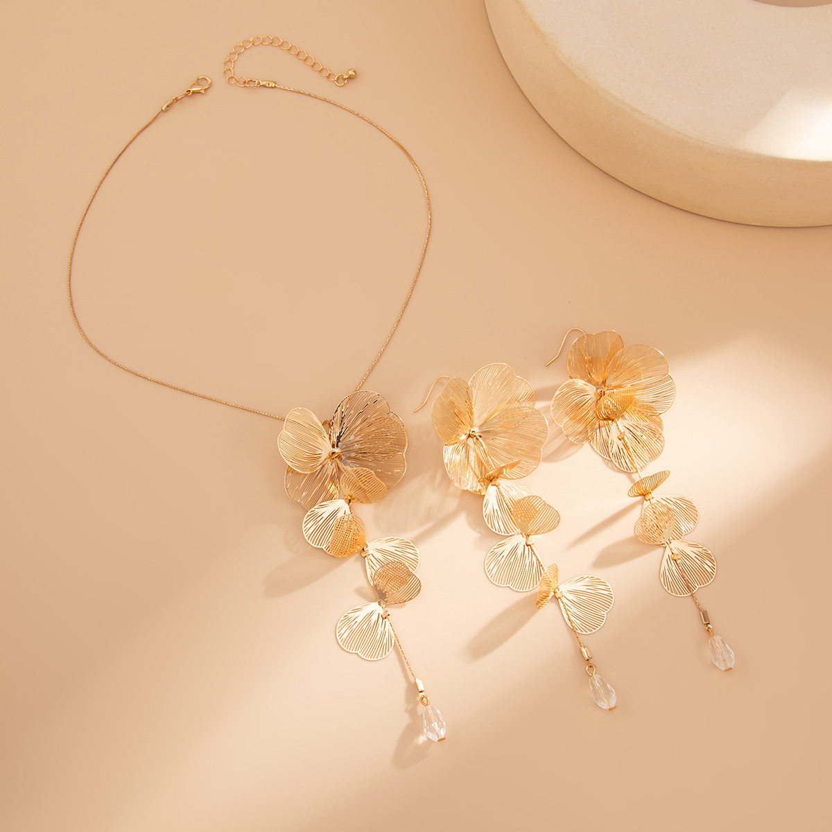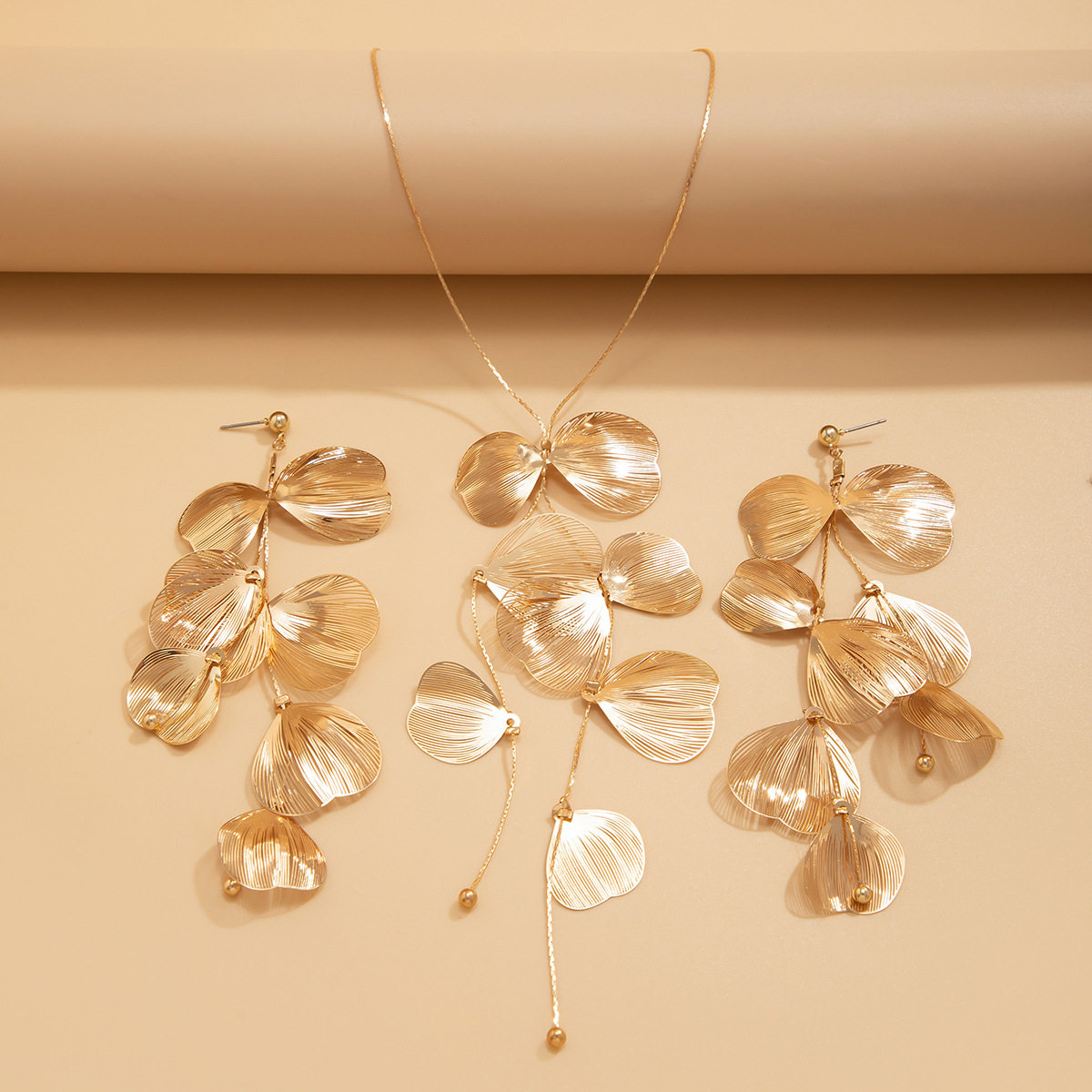 European and American niche ginkgo leaf tassel necklace sweet cool style design cross-border retro pull collar jewelry choker