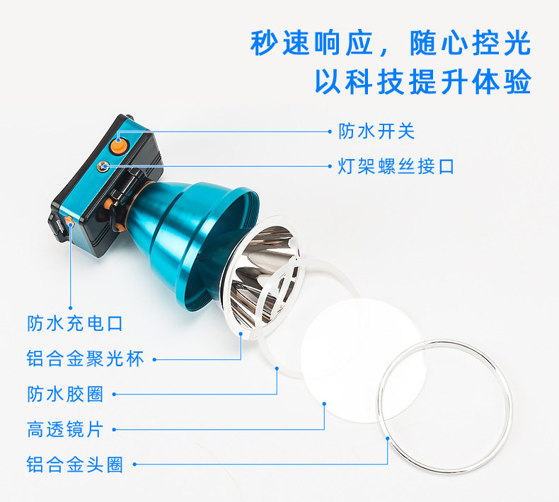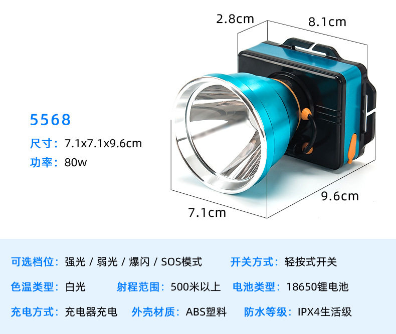 LED Aluminum Alloy High-power Rechargeable Head-mounted Strong Light Headlight Large Spot Fishing Outdoor Flashlight Miner's Lamp