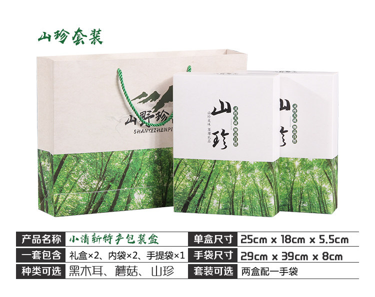 | Specifications and models | Small fresh-black fungus two-box set * default,Small fresh-mushroom two-box set * default item,Small fresh-Shanzhen two-box set * default item,Ingenuity tube-black fungus two-tube set * default item,Ingenuity tube-mushroom two-tube set * default item,Ingenuity tube-Shanzhen two-tube set * default item,Ingenuity tube-hazelnut two-tube set * default item,Ingenuity tube-pine nuts two tube set * default item,Portable box-fungus two-box set * default,Portable Box-Mushroom Two-Box Set * Default,Portable box-Shanzhen two-box set * default item |