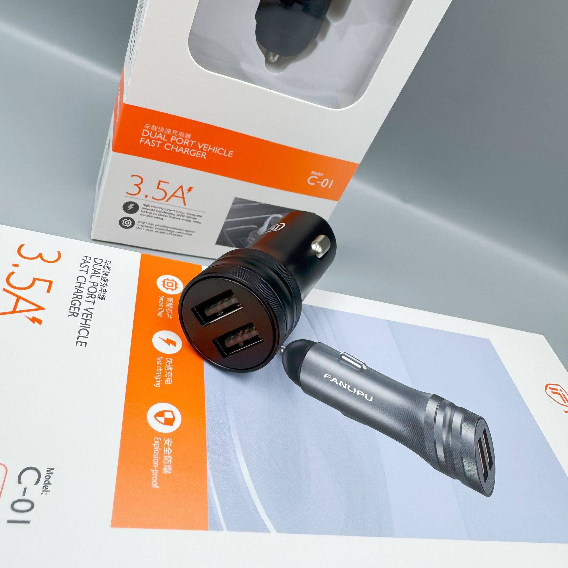 Small steel gun car charger 3.5A USB + USB metal aluminum alloy car charger mobile phone car charger cross-border batch