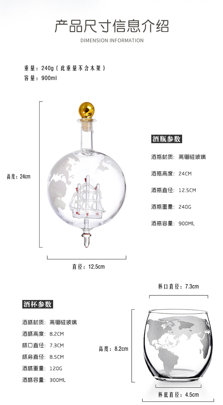 Spherical glass wine bottle vodka wine bottle bar home map Cup suit Oval globe decanter