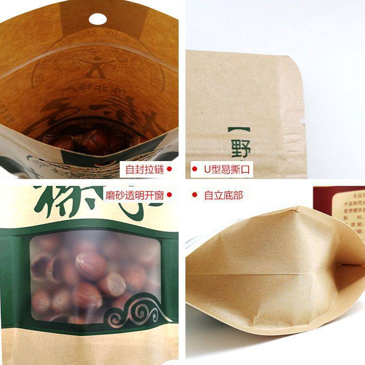 Hazelnut Pine Nut Kraft Paper Bag Raisin Pine Nut Bag Kraft Paper Bag Self-standing Self-sealing Packaging Bag