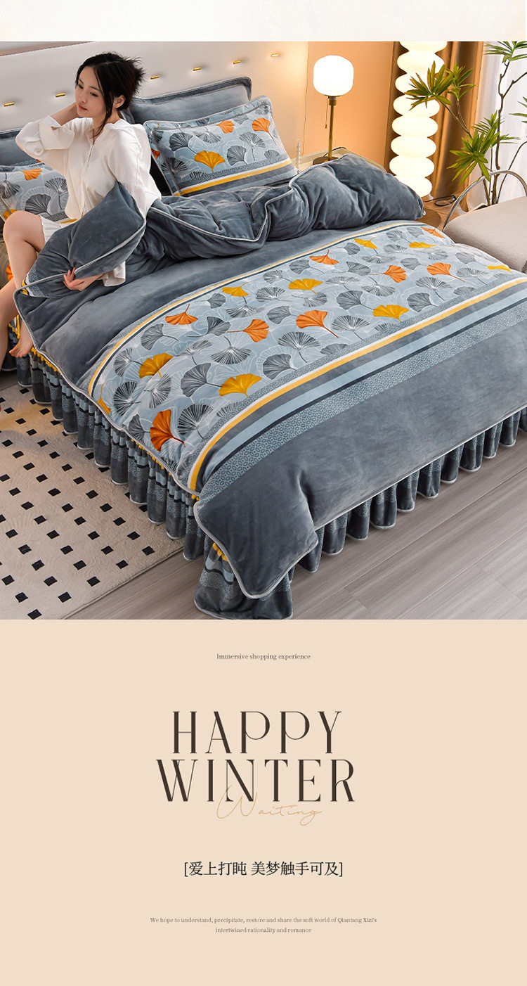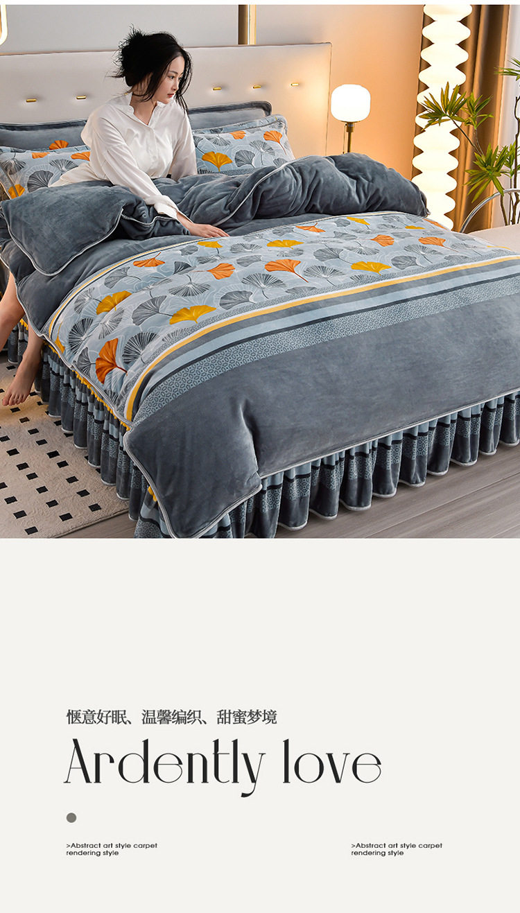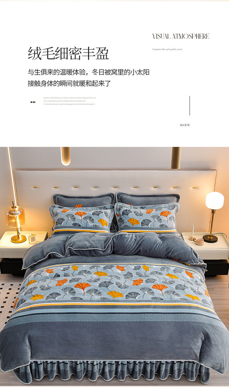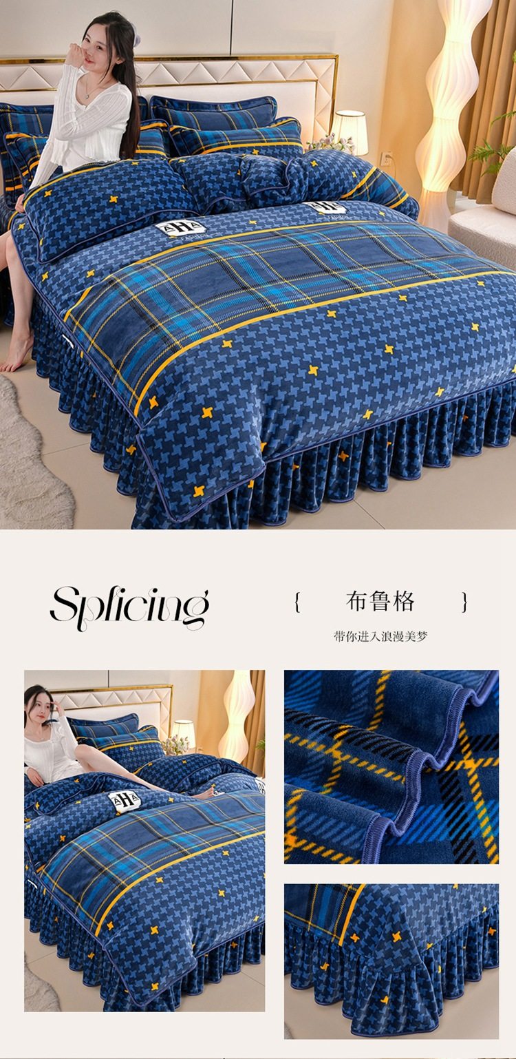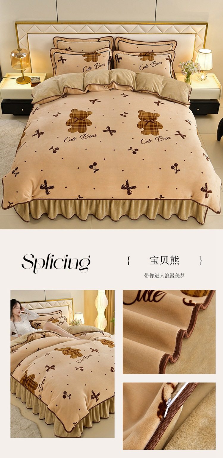 Winter thickened milk velvet four-piece set double-sided velvet coral fleece fleece-lined quilt cover bed sheet dormitory three-piece lint-free set