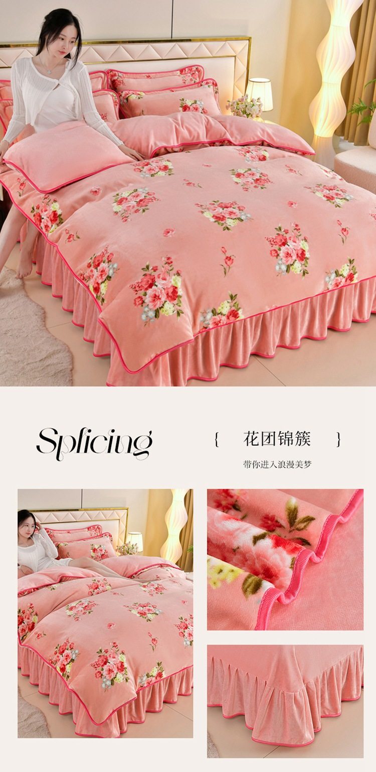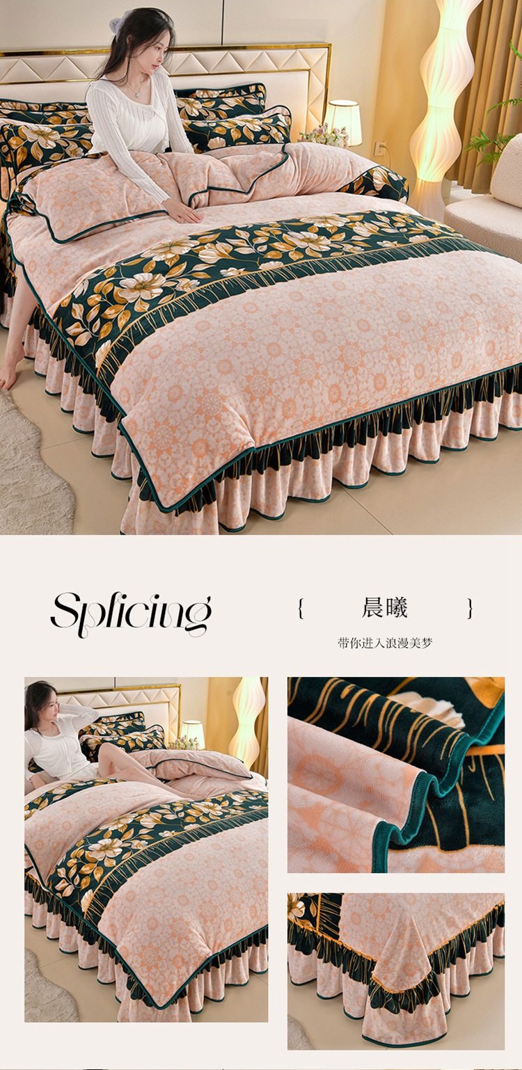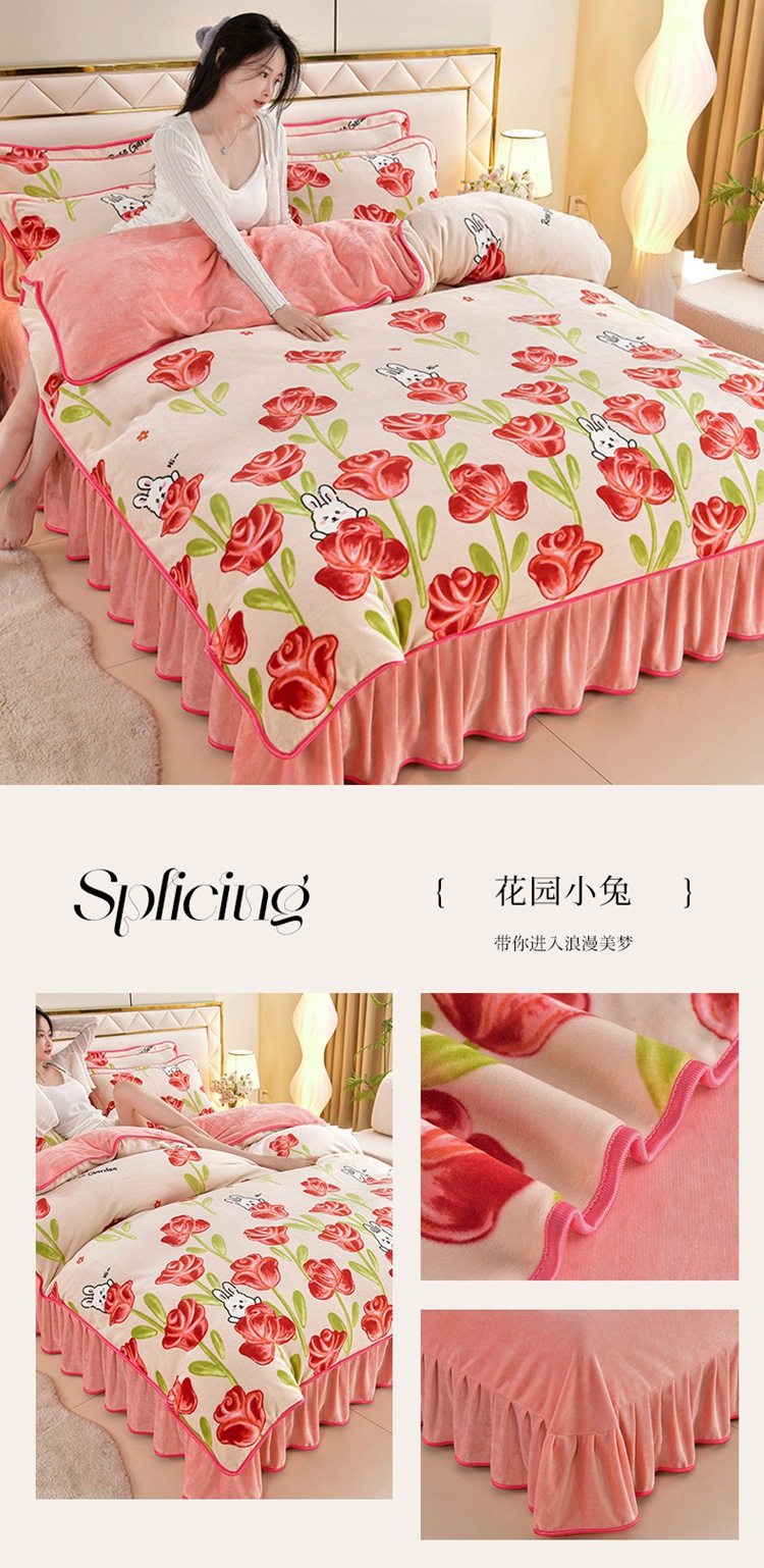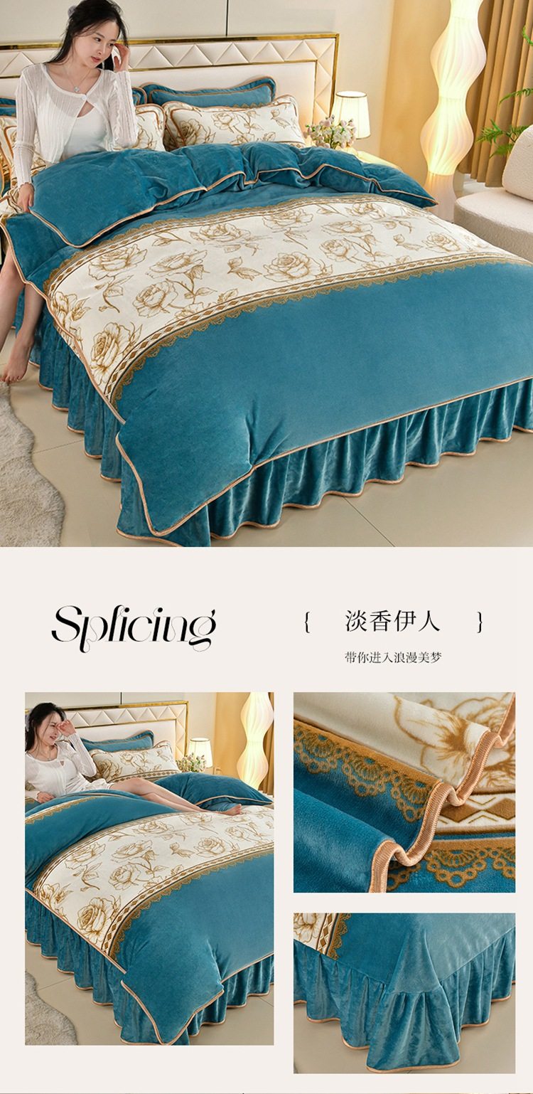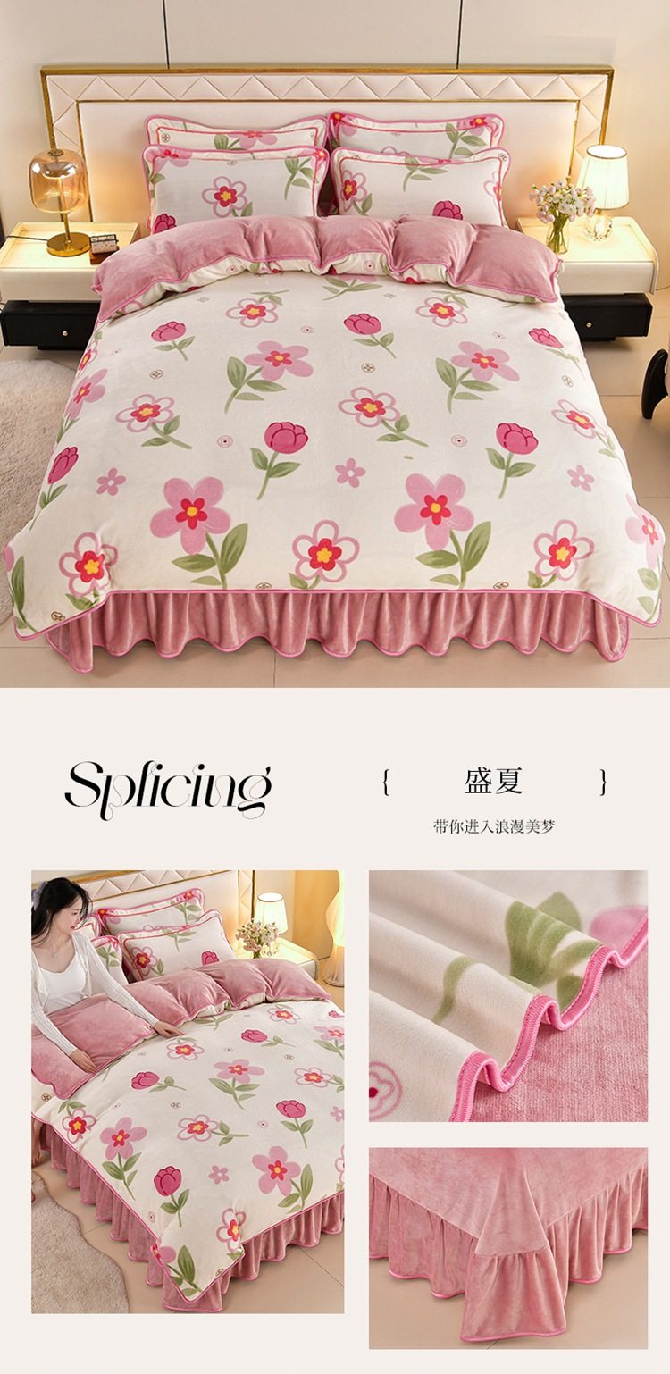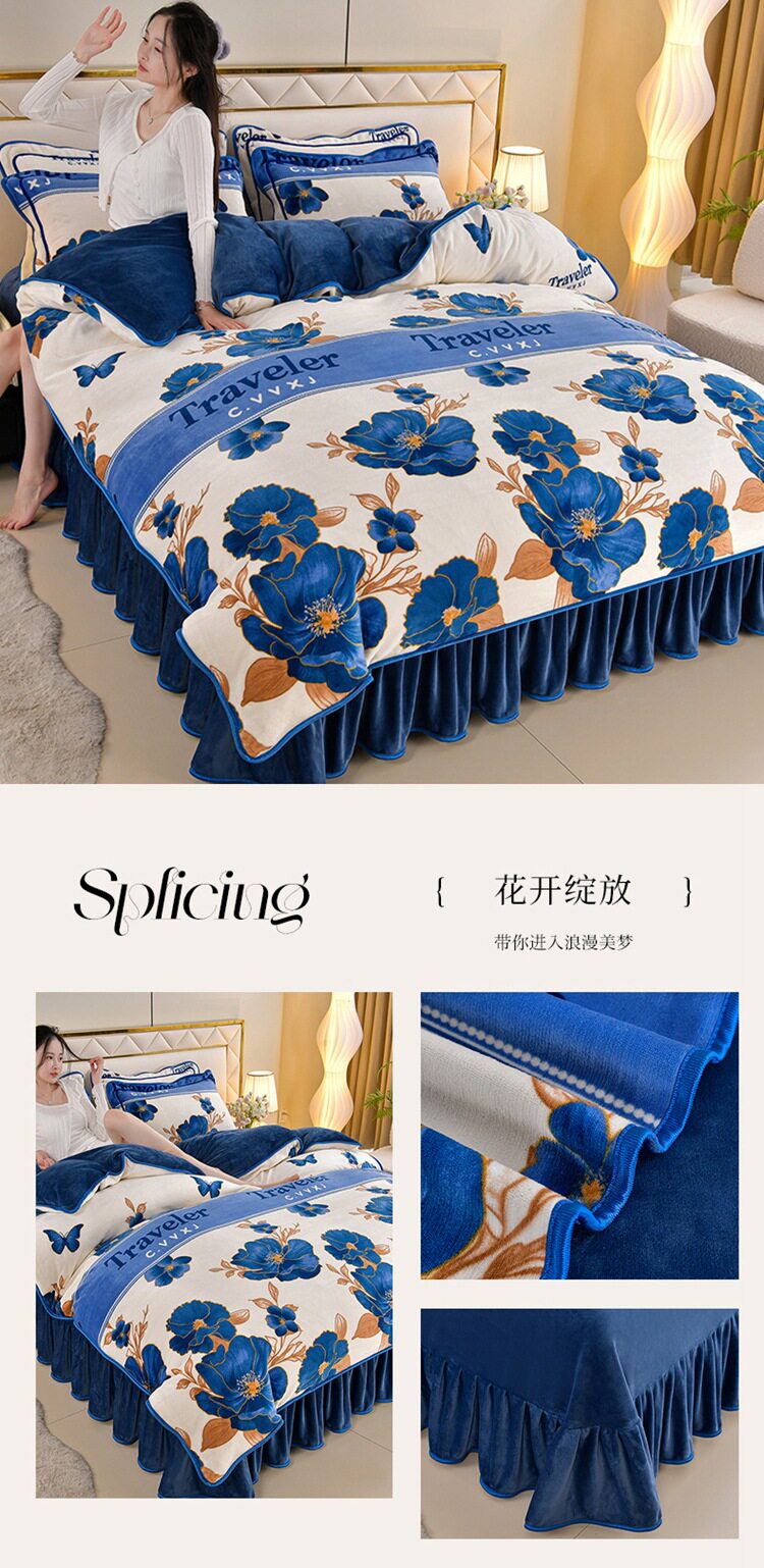 Winter thickened milk velvet four-piece set double-sided velvet coral fleece fleece-lined quilt cover bed sheet dormitory three-piece lint-free set