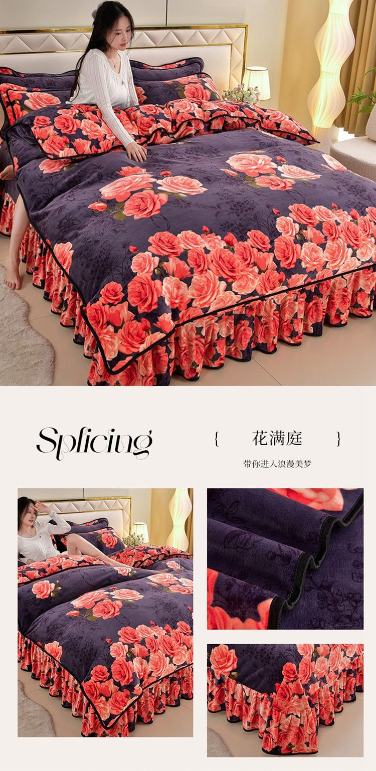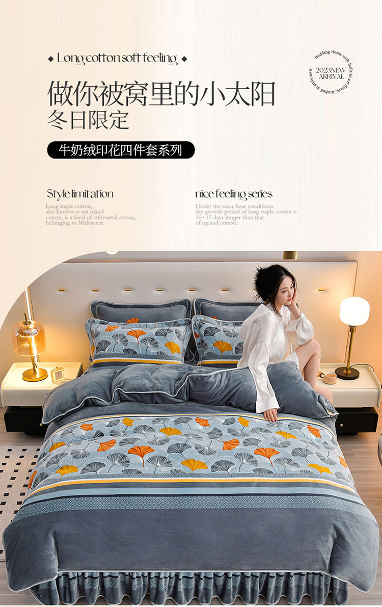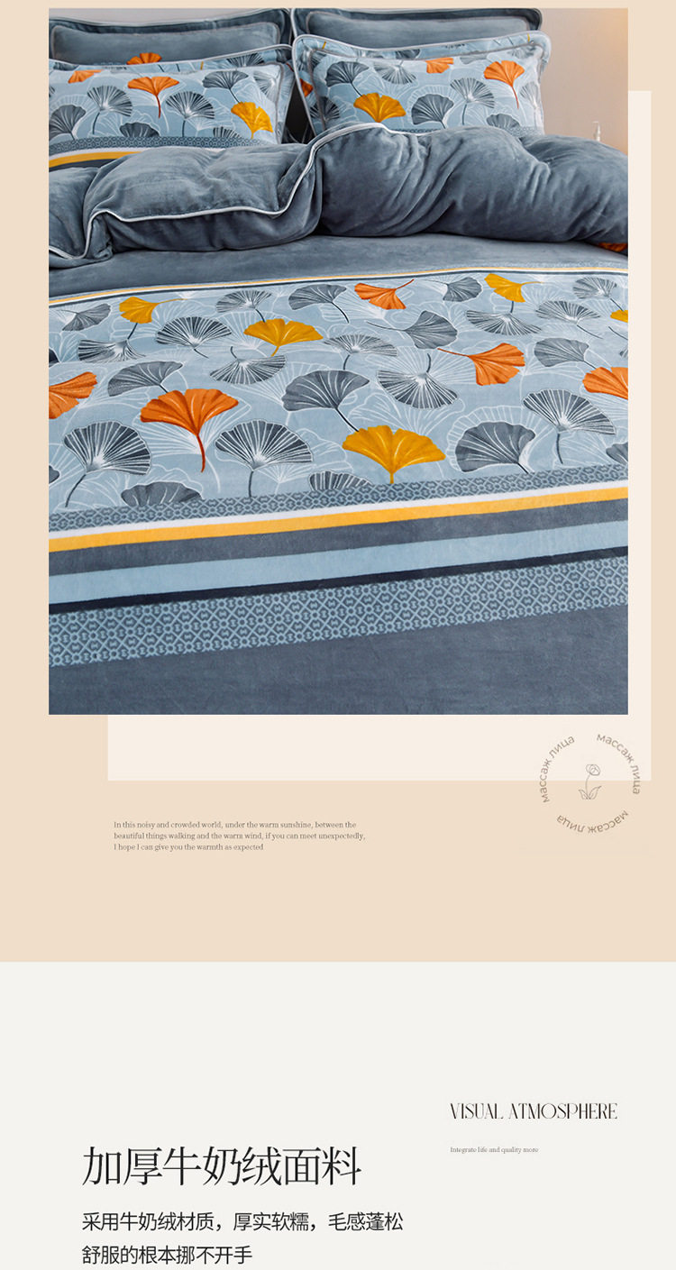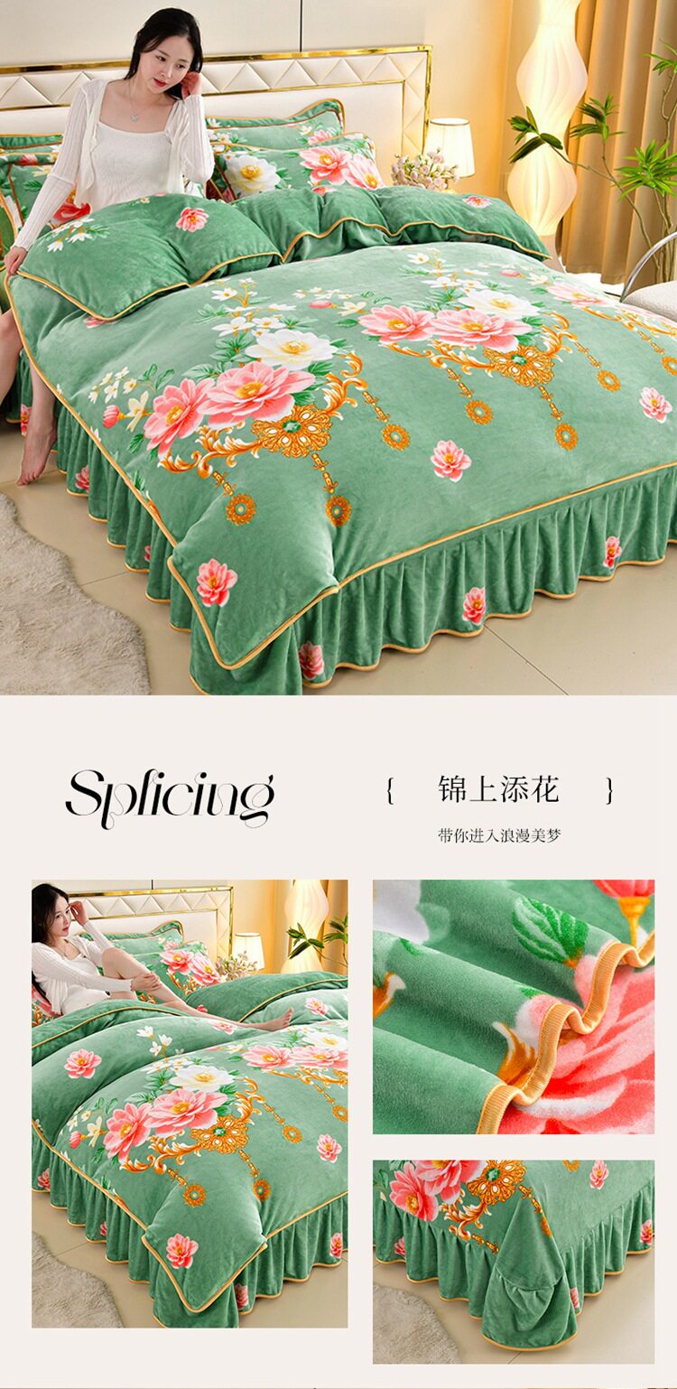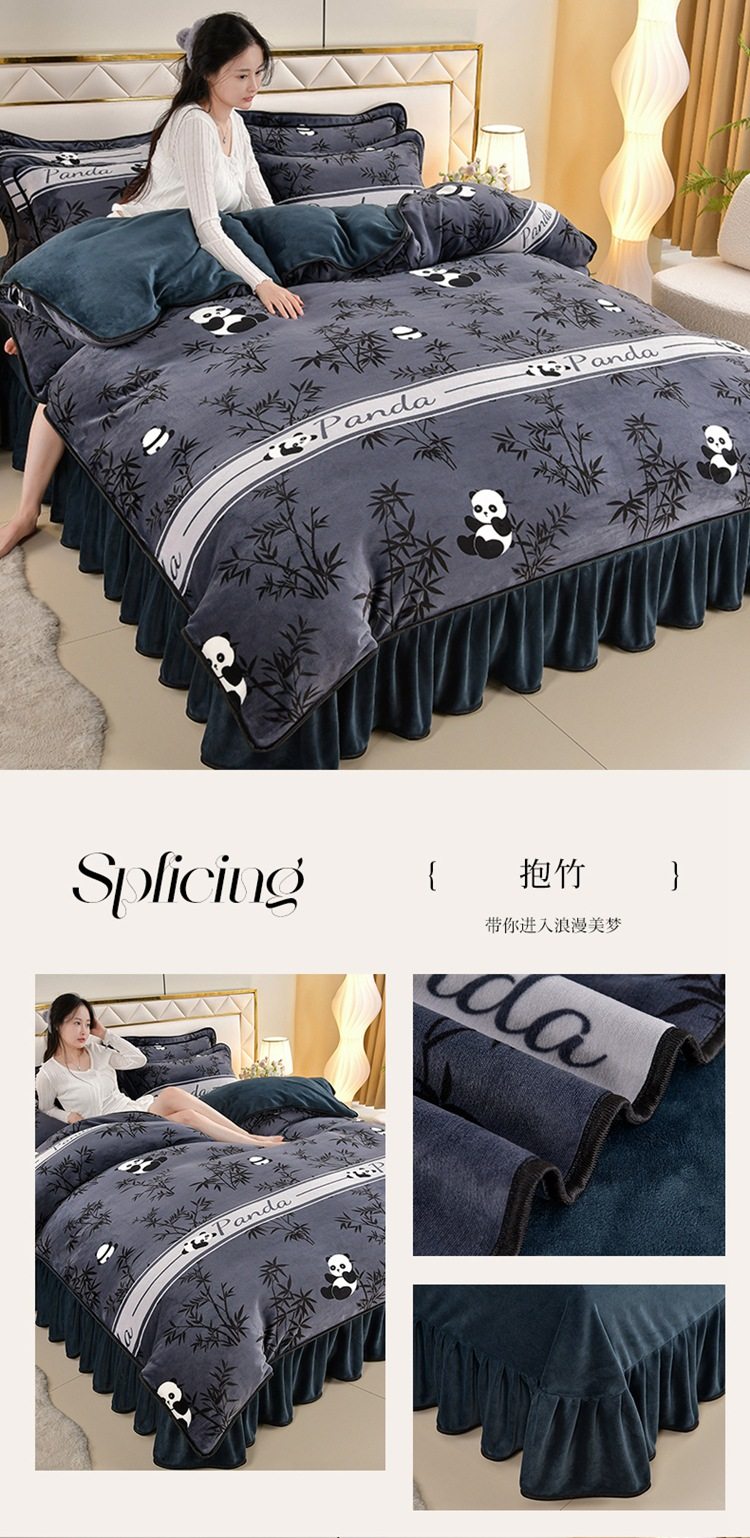 Winter thickened milk velvet four-piece set double-sided velvet coral fleece fleece-lined quilt cover bed sheet dormitory three-piece lint-free set