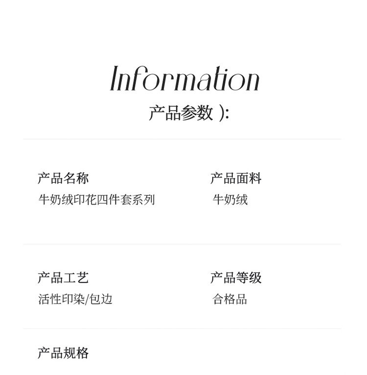 | Bedding subdivision | Four-piece set |