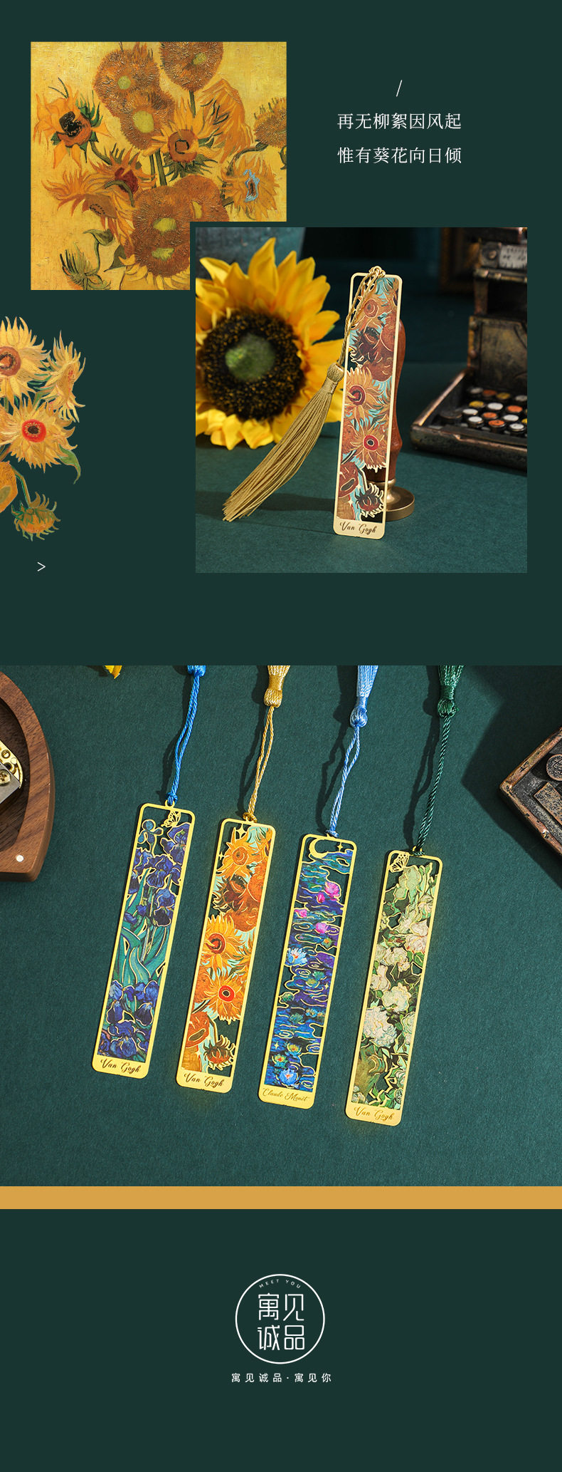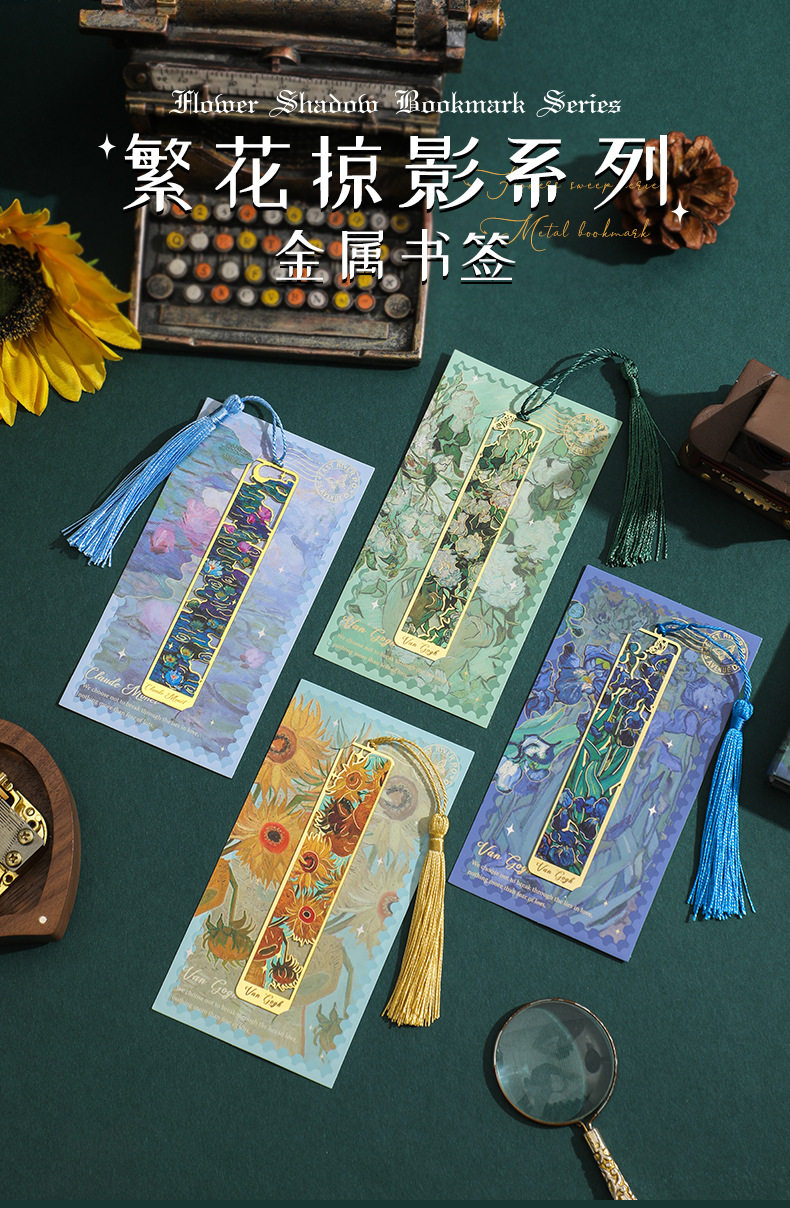 Ji Luyu Meets Chengpin: Flower Sketch Series Bookmarks, Vintage Famous Paintings Metal Planner Charms, Reading Book Clips, Ji