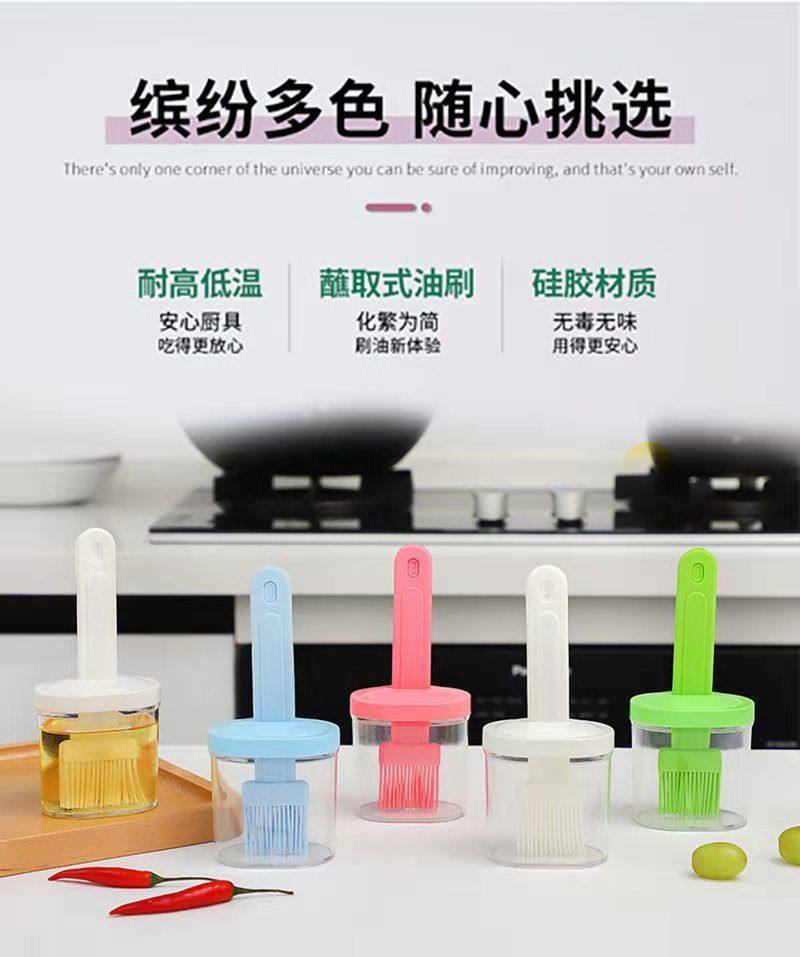 New oil brush household high temperature resistant silicone barbecue oil brush Kitchen pancake food grade baking with bottle integrated