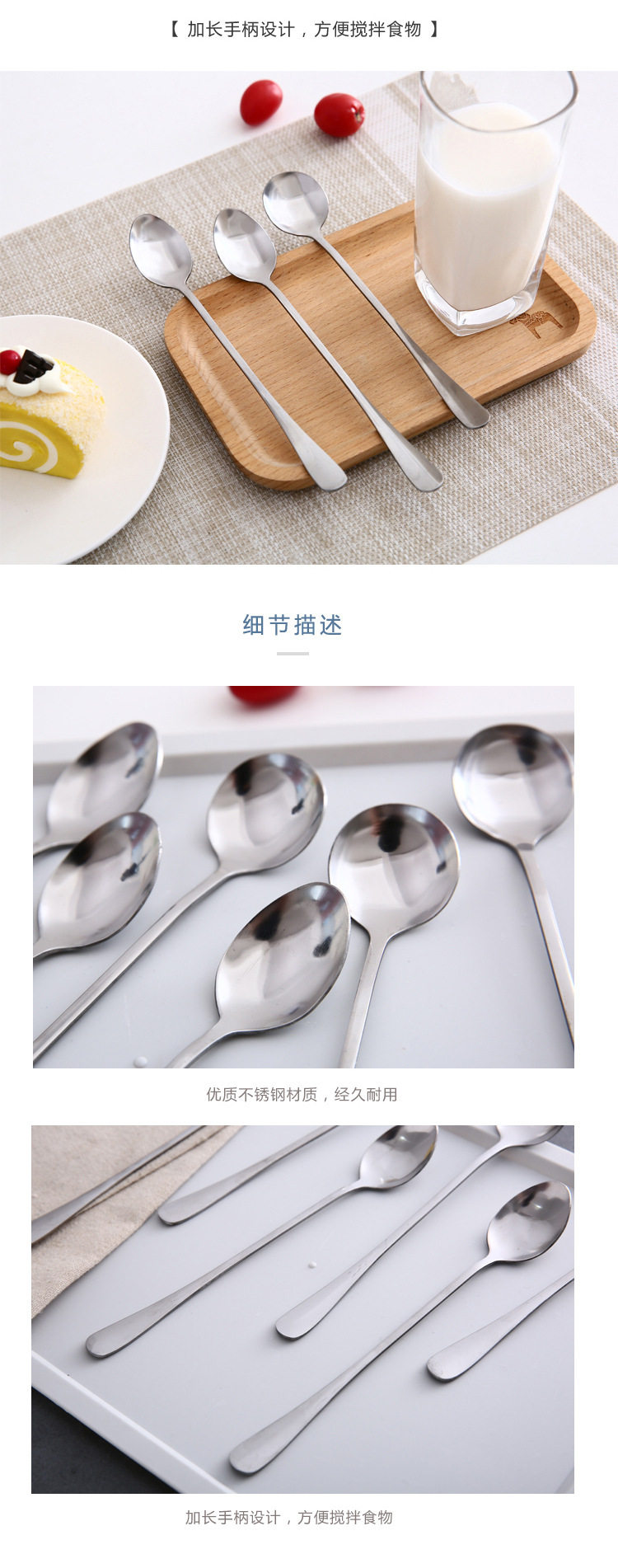 304 stainless steel coffee spoon long handle spoon ice spoon seasoning spoon mixing spoon ice spoon milk tea long handle spoon seasoning spoon