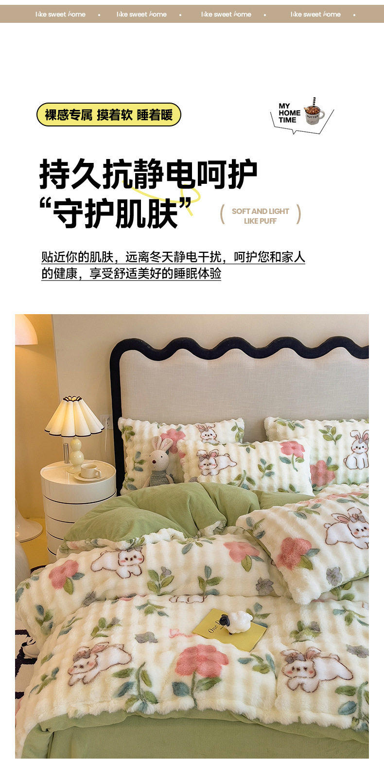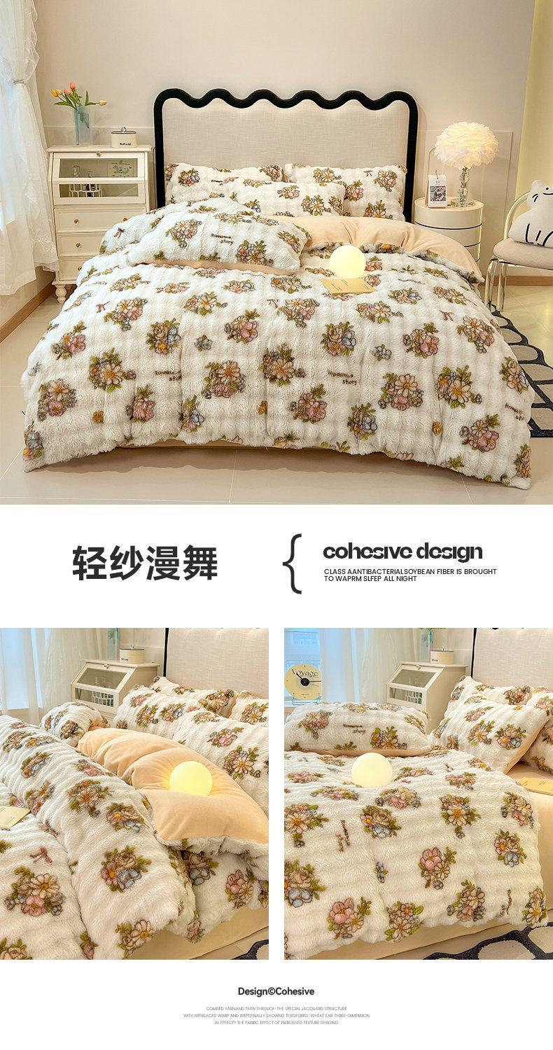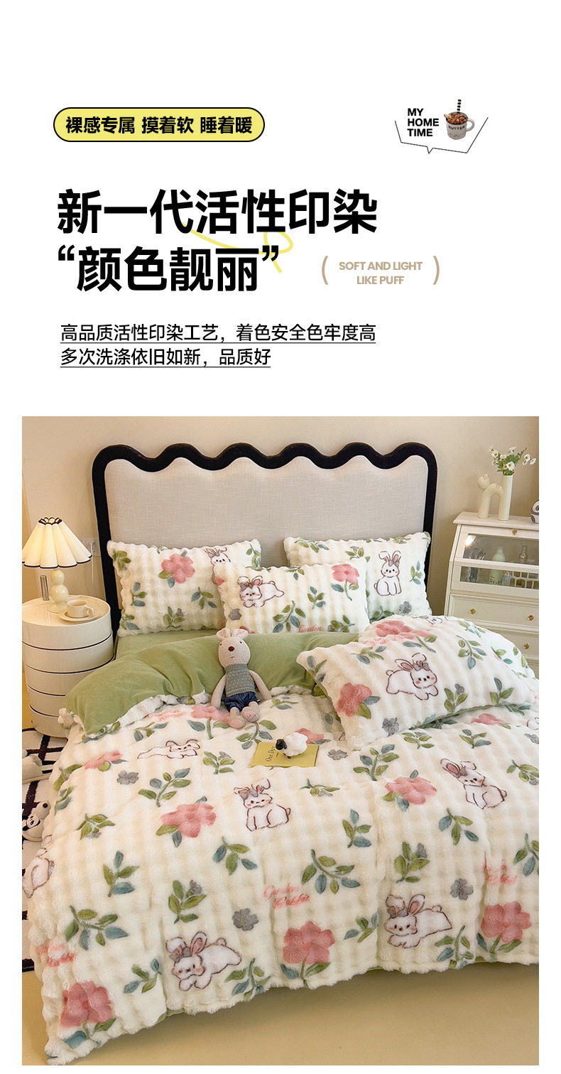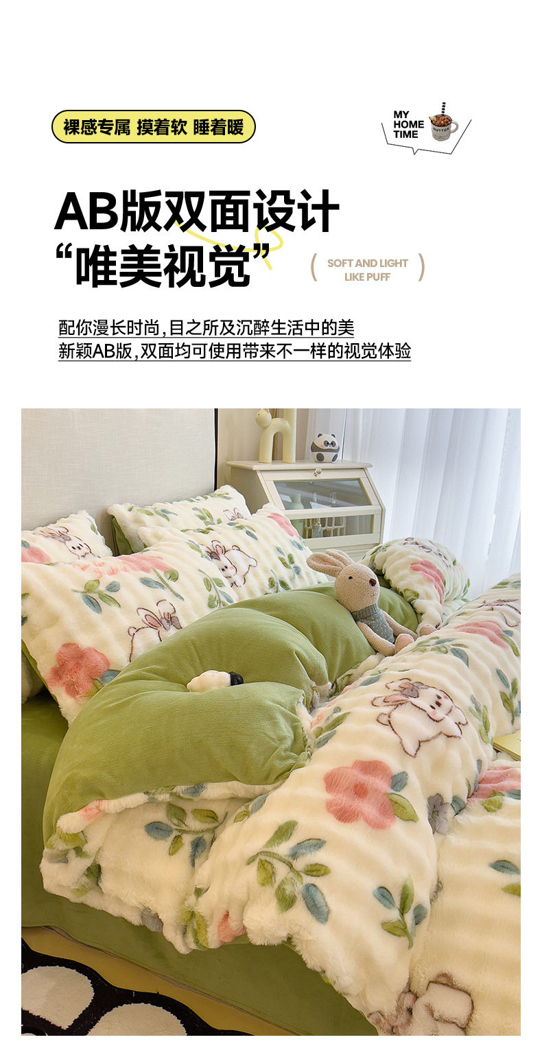 Winter thickened rabbit plush four-piece milk velvet quilt cover coral velvet bed sheet quilt cover flannel bed three-piece set