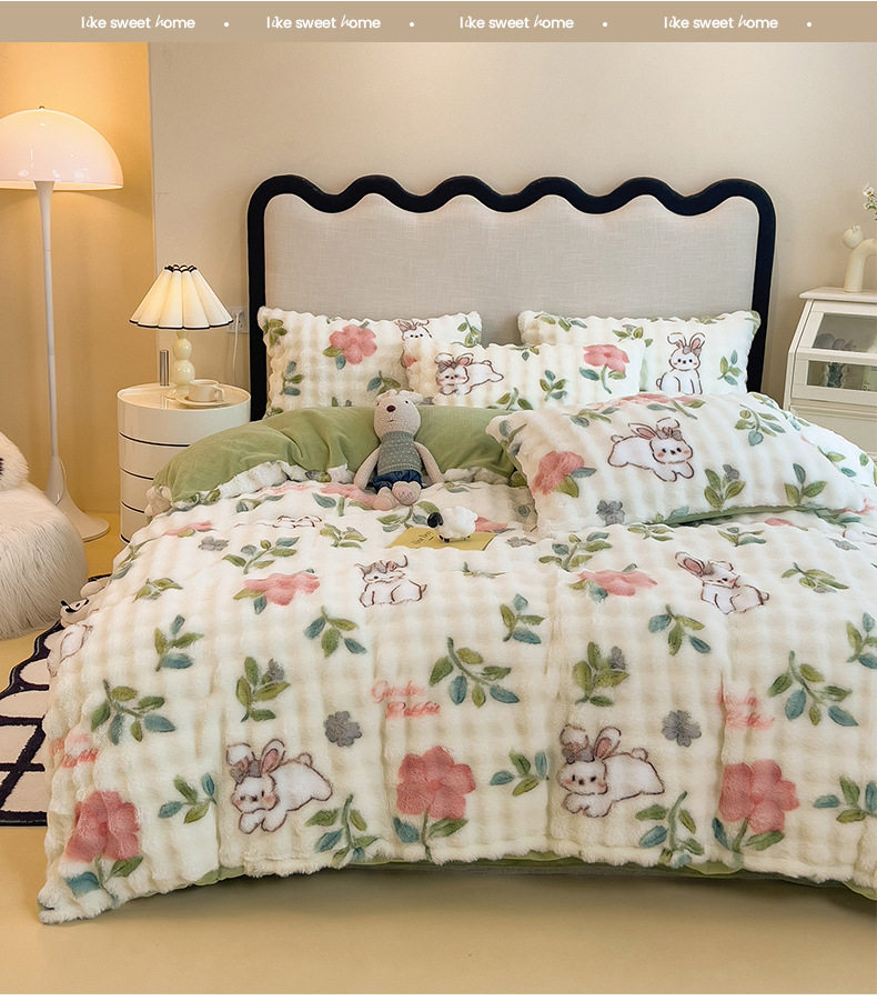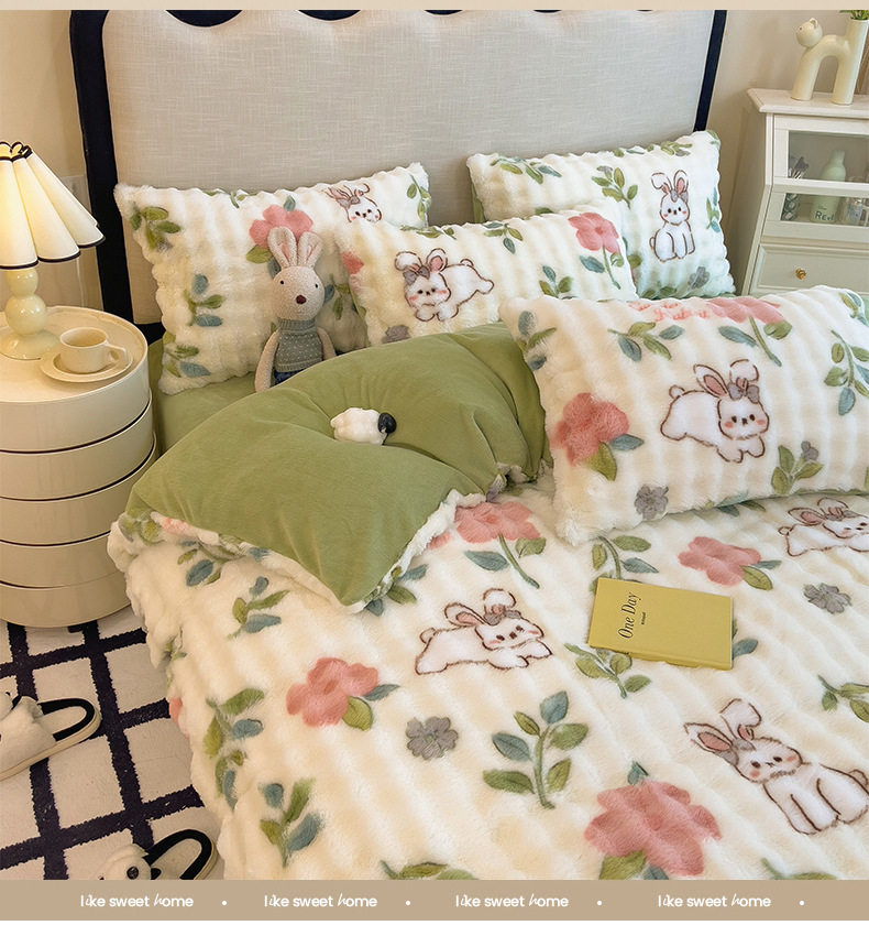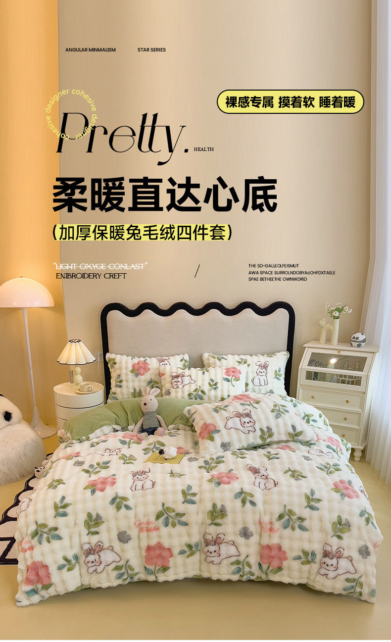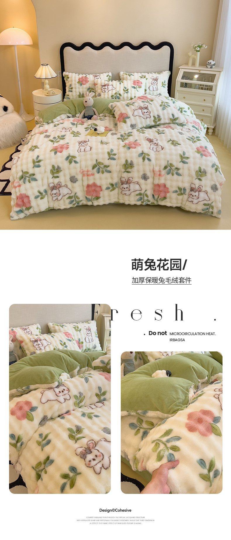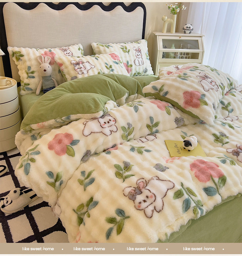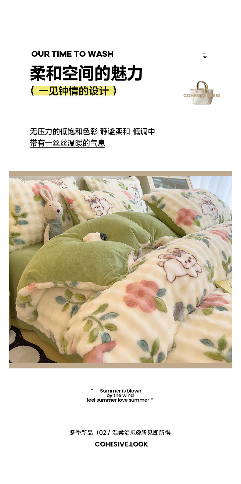 Winter thickened rabbit plush four-piece milk velvet quilt cover coral velvet bed sheet quilt cover flannel bed three-piece set