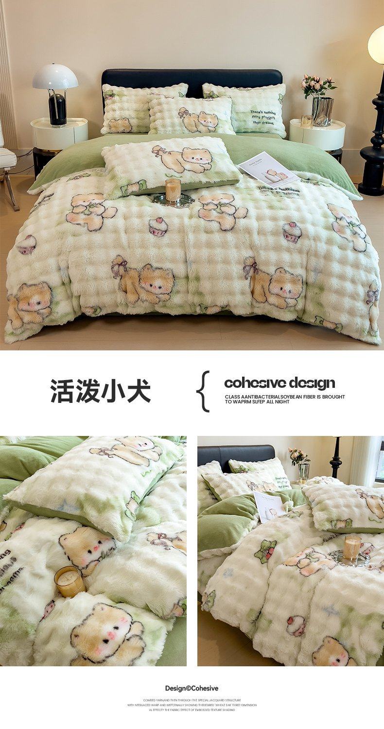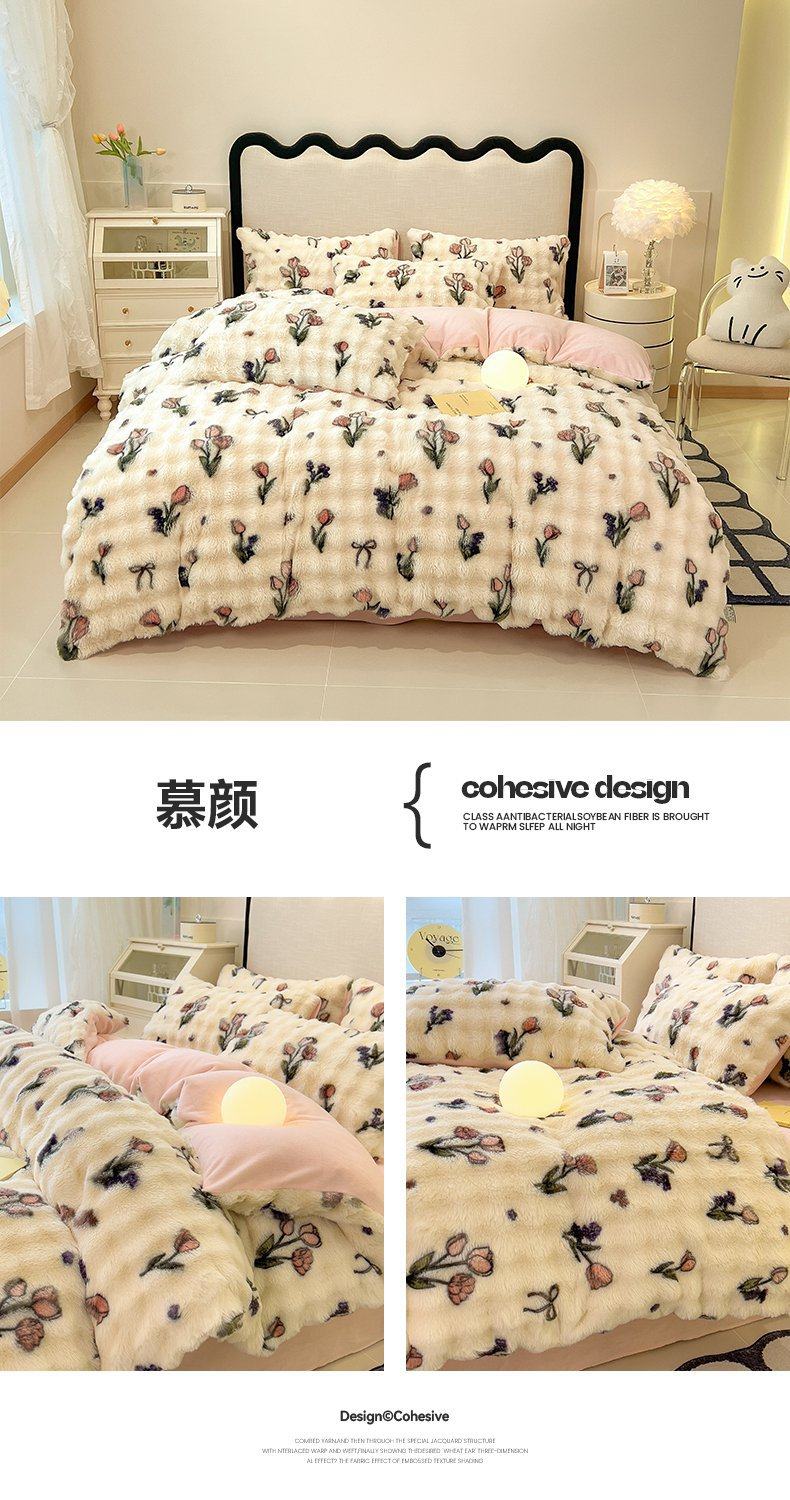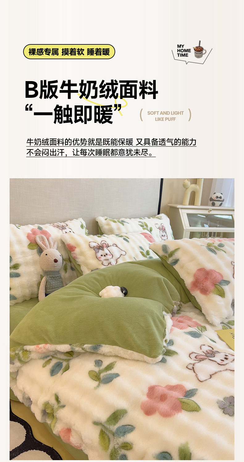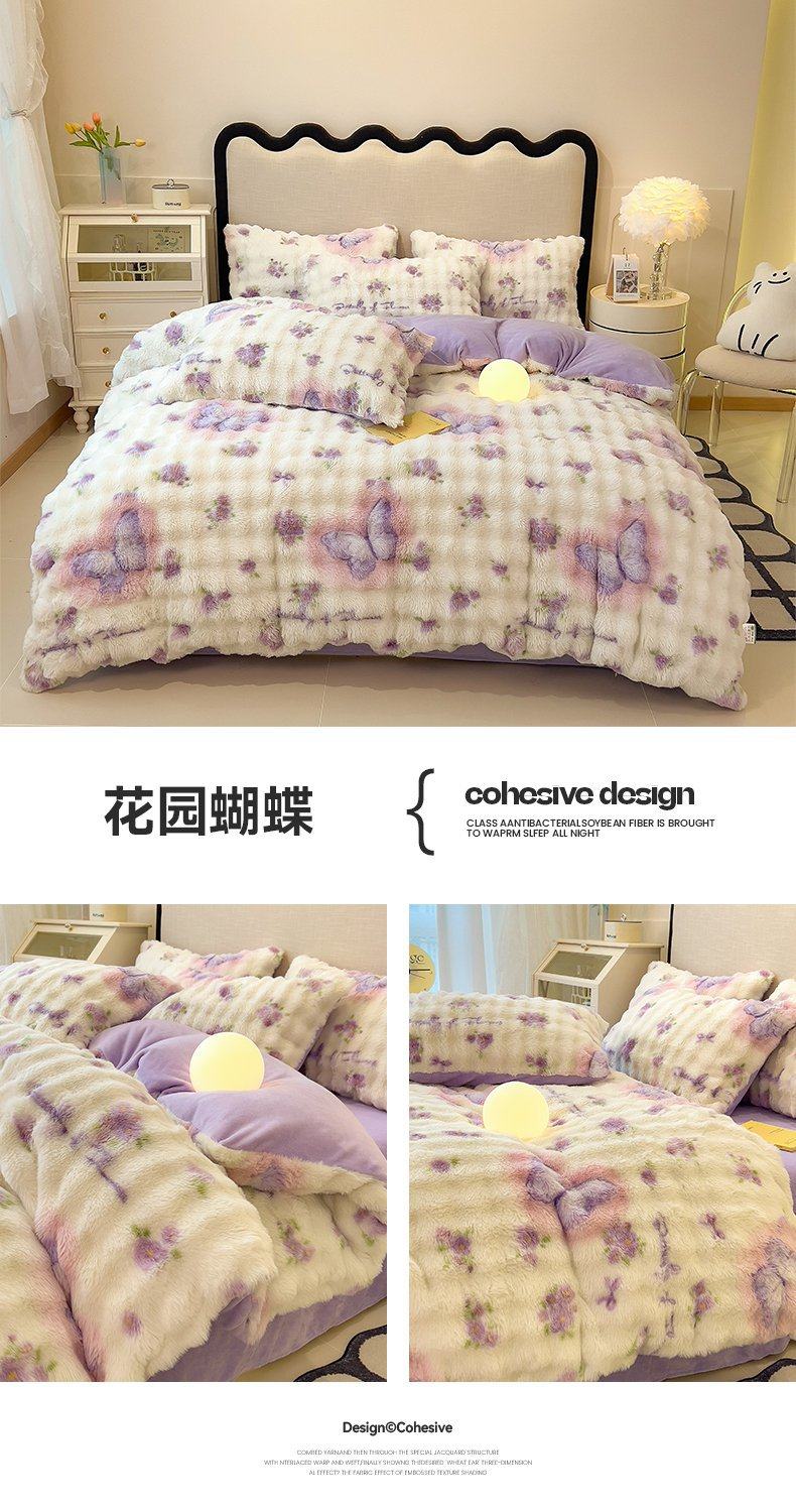 Winter thickened rabbit plush four-piece milk velvet quilt cover coral velvet bed sheet quilt cover flannel bed three-piece set