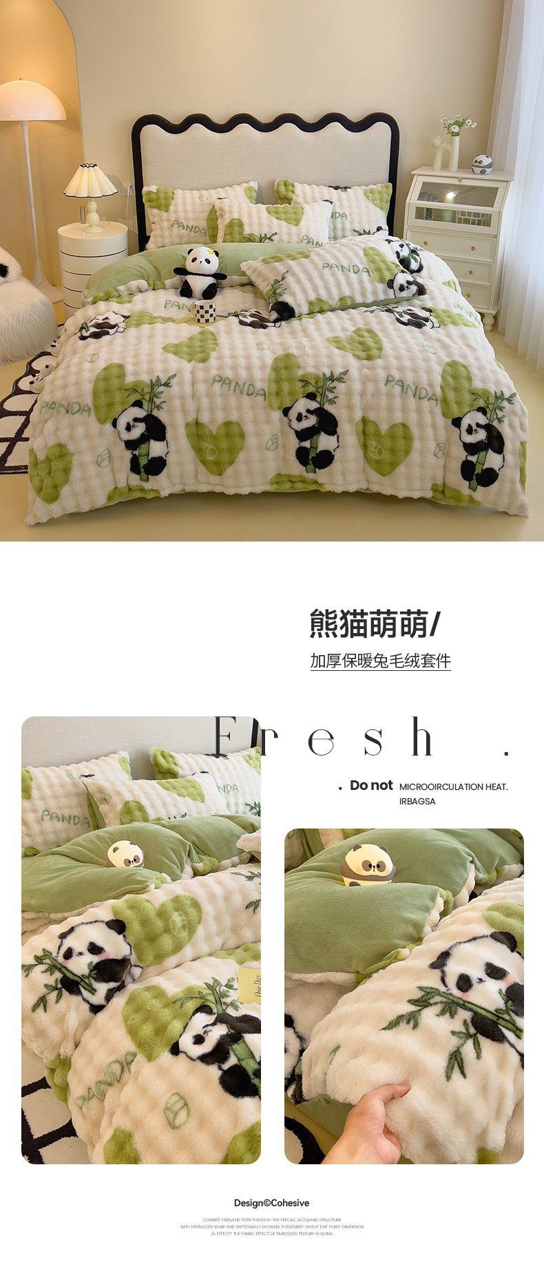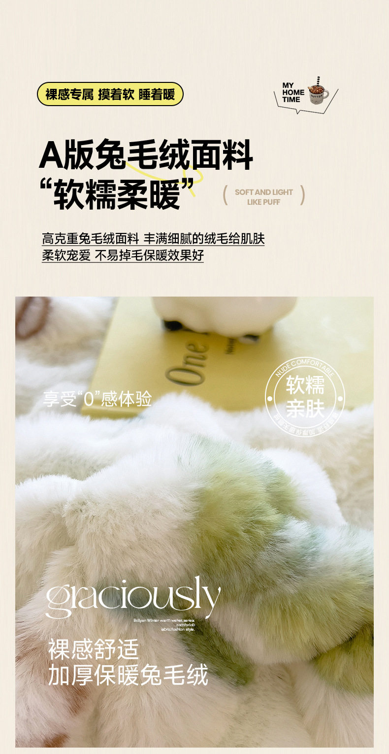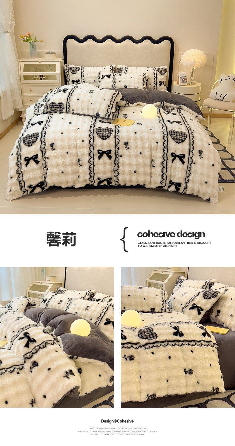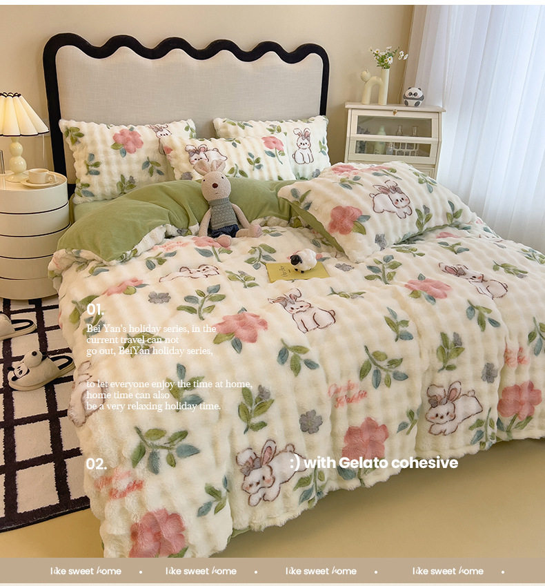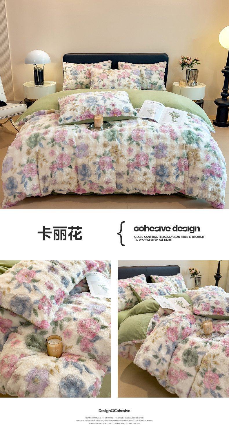 Winter thickened rabbit plush four-piece milk velvet quilt cover coral velvet bed sheet quilt cover flannel bed three-piece set