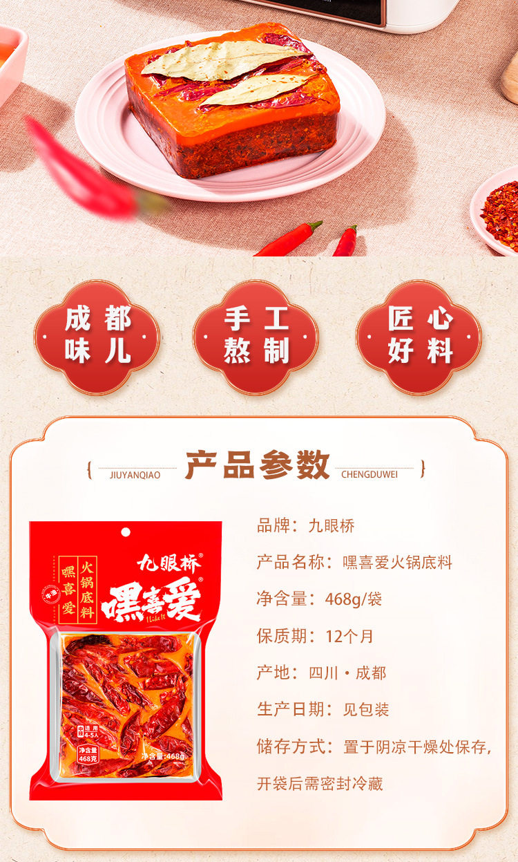 Jiulianqiao Hot Pot Base Chongqing Butter Hot Pot Base Wholesale Maocai Malatang Whole Box Commercial 468g