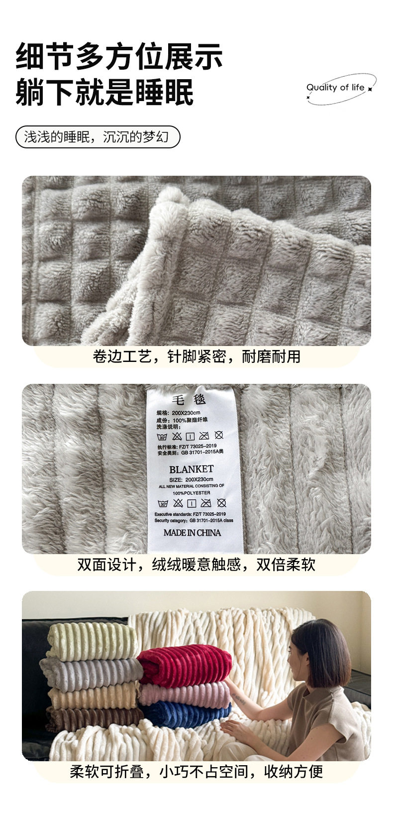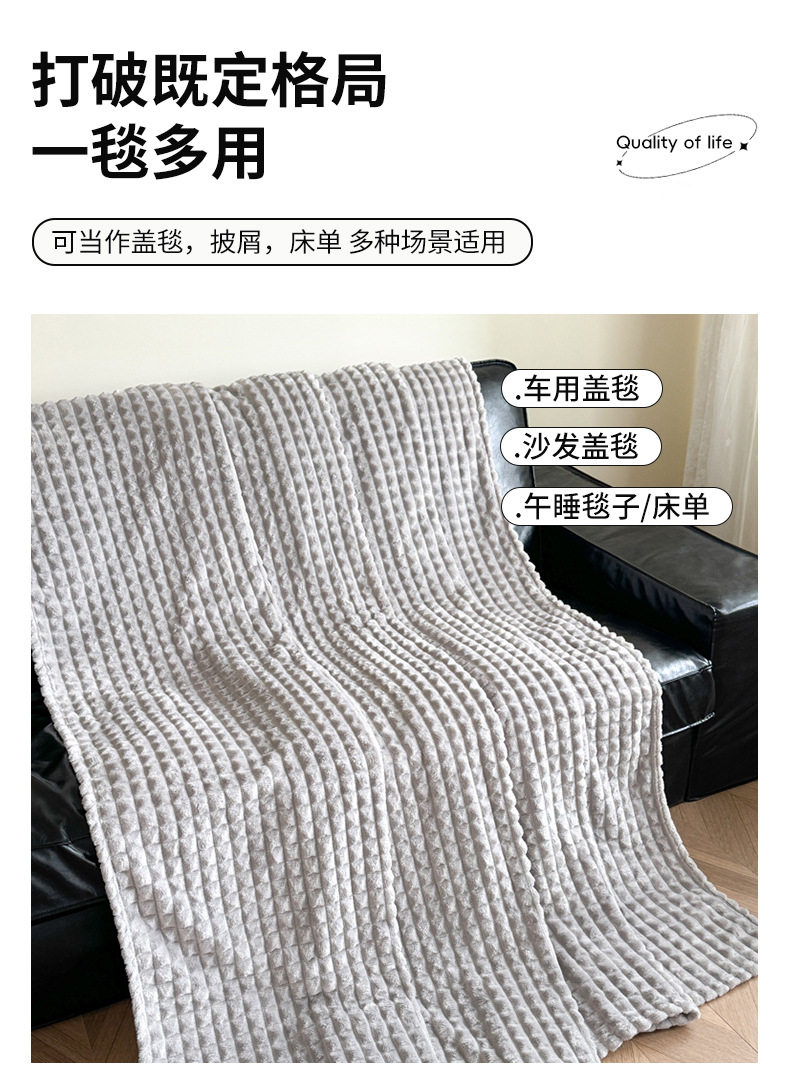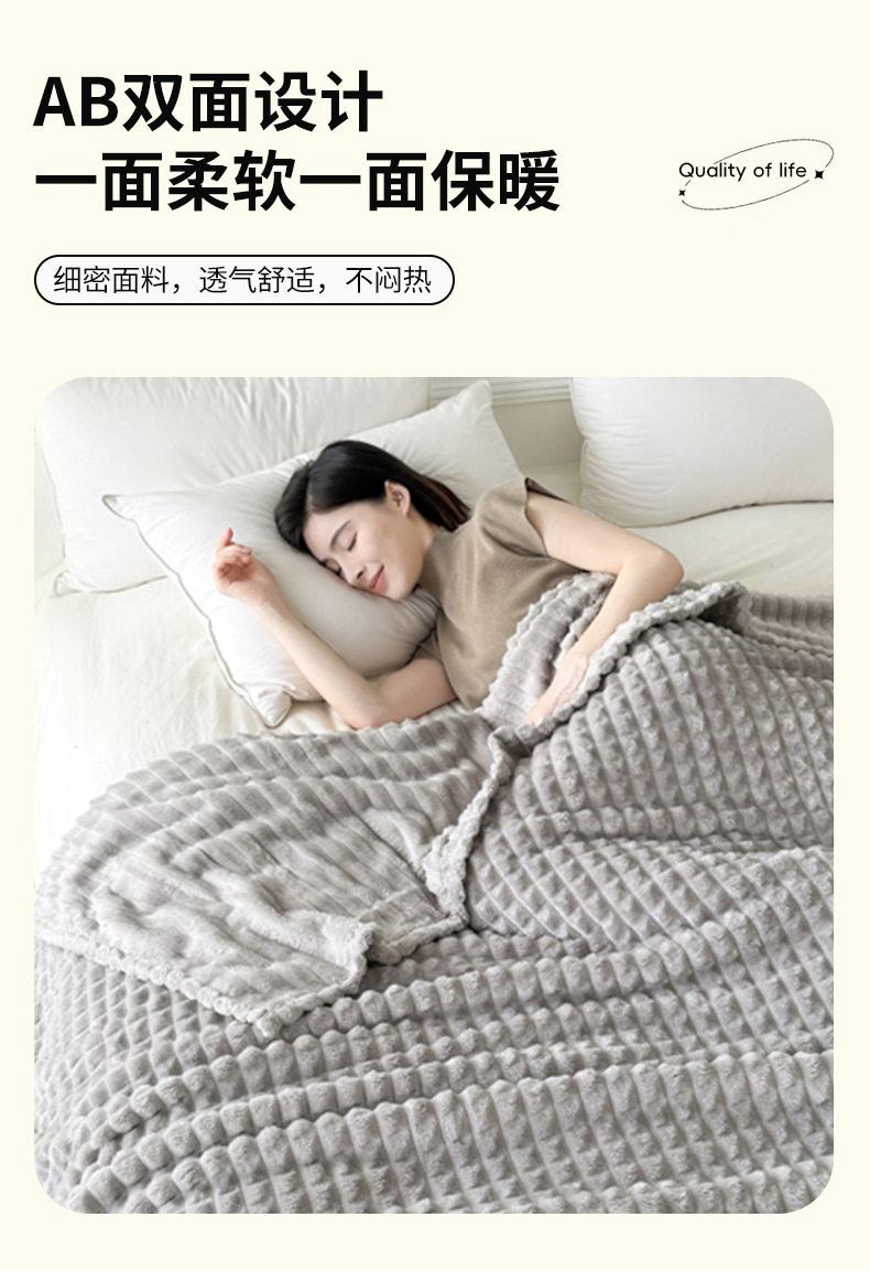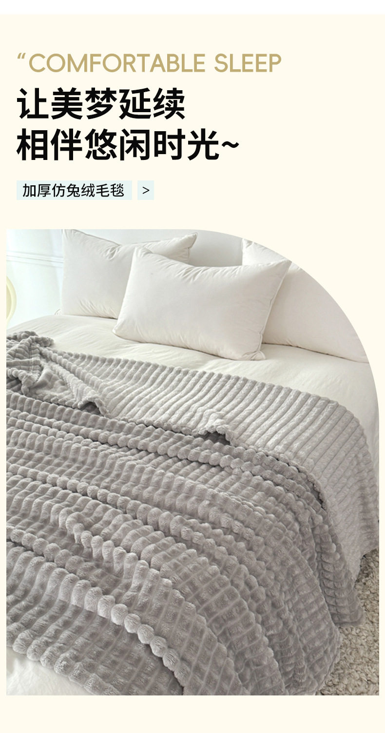 New Autumn and Winter Thickened Wide Striped Cut Flower Imitation Rabbit Plush Milk Velvet Flannel Blanket Lunch Break Blanket Source Wholesale