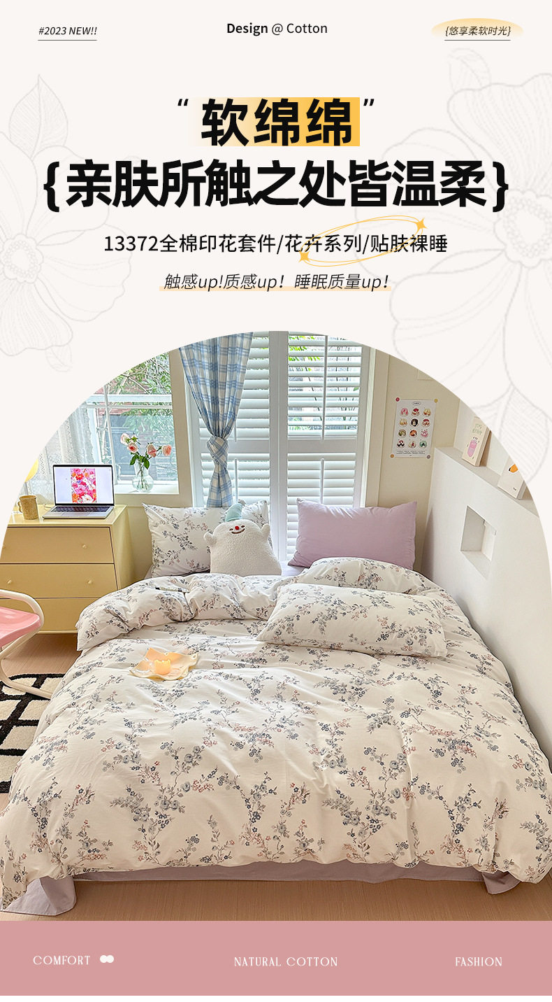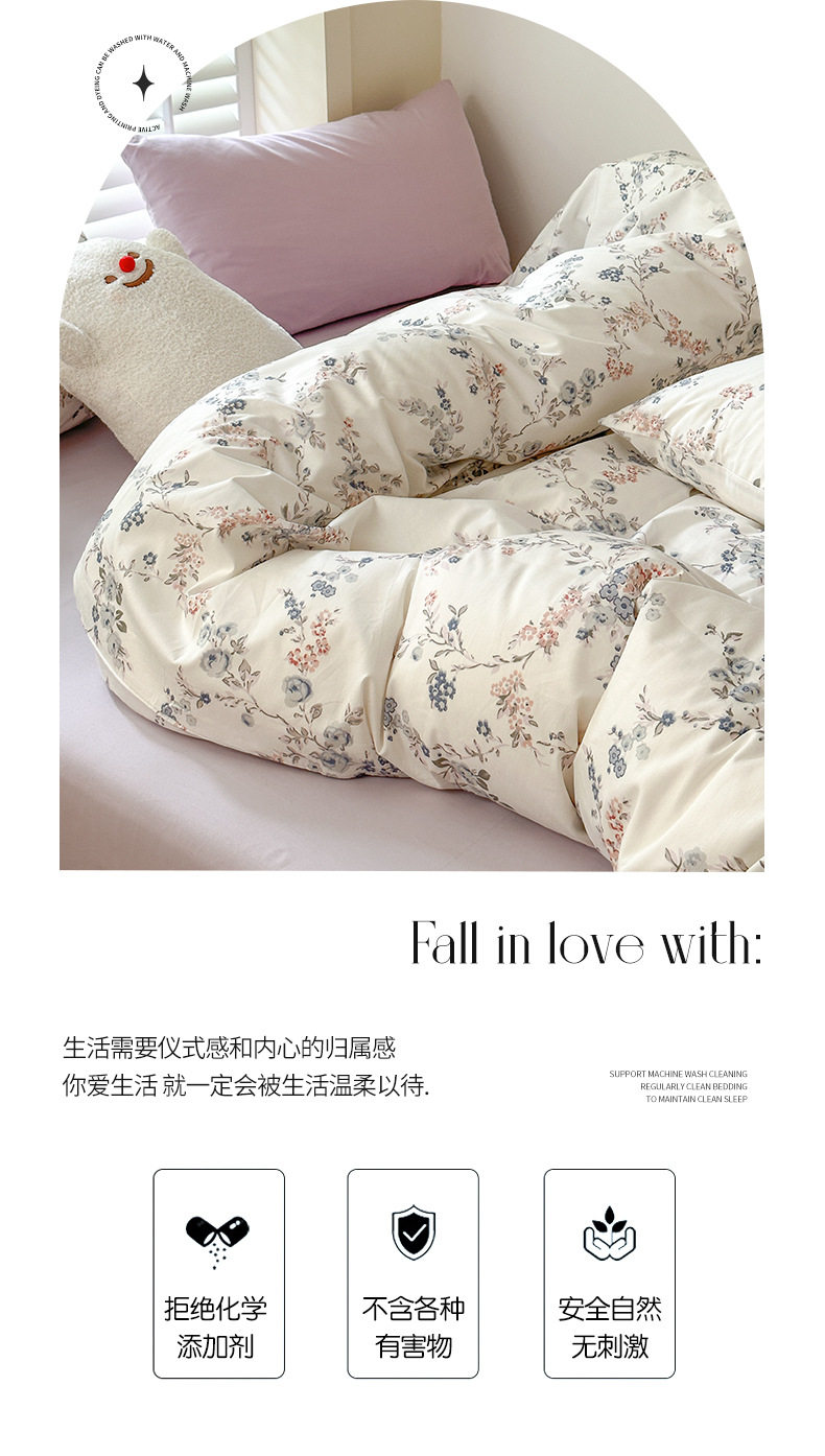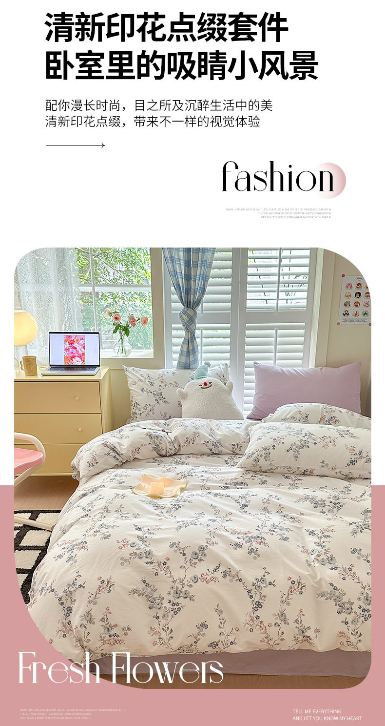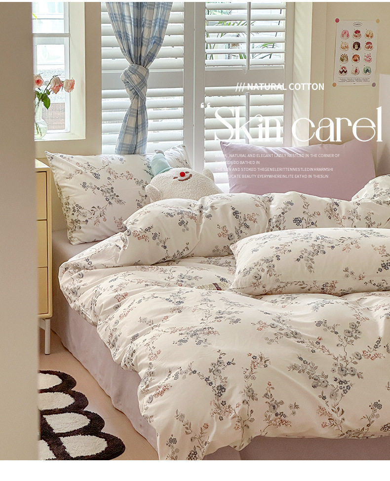 Spring New 60 cotton four-piece set simple small floral cotton bed sheet quilt cover three-piece bedding 4