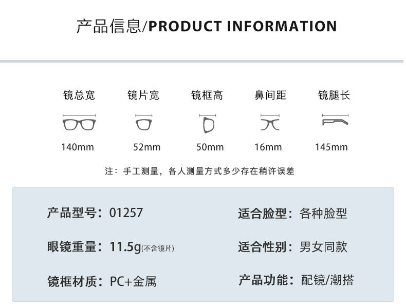 Frame color Silver gloss black,Gold shiny black,Transparent gray silver,Through tea gold,Translucent green silver,Transparent gold frame