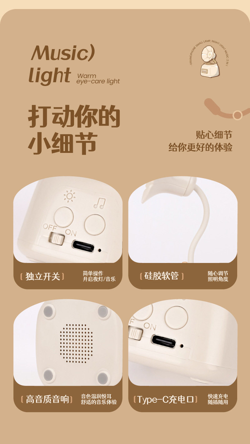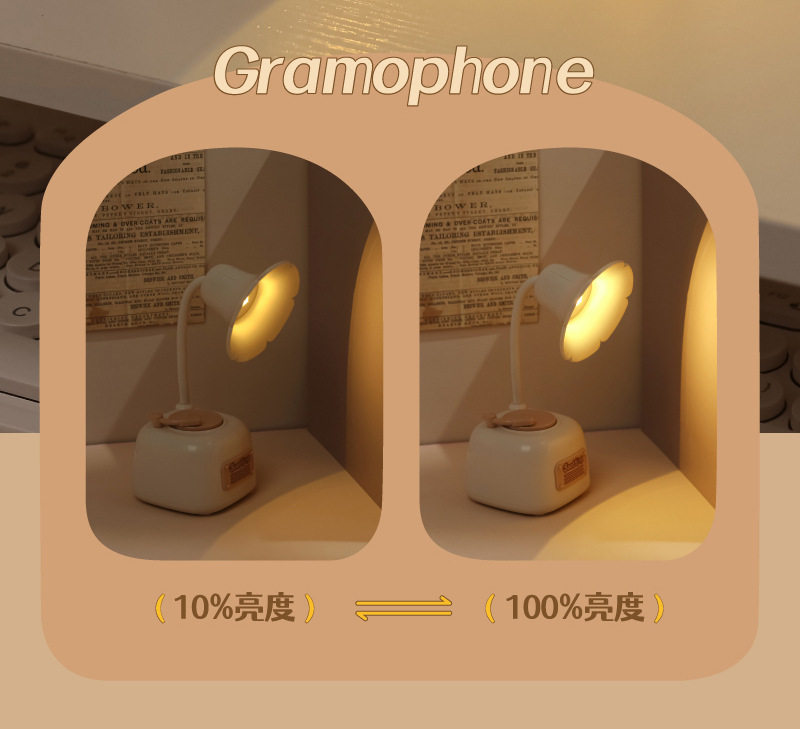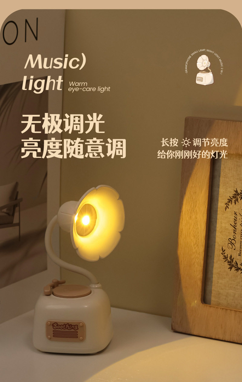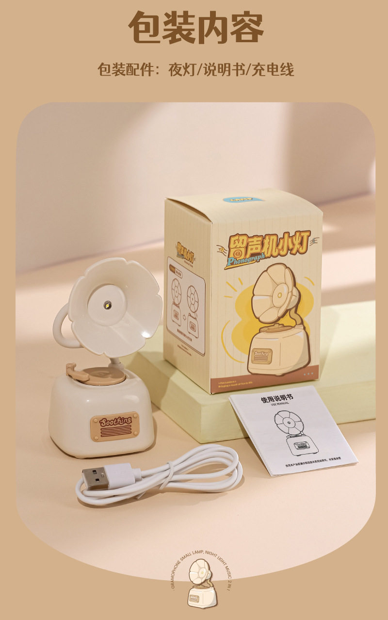 Cute gramophone mini night light usb rechargeable music bedside eye protection desk lamp girl birthday gift wholesale