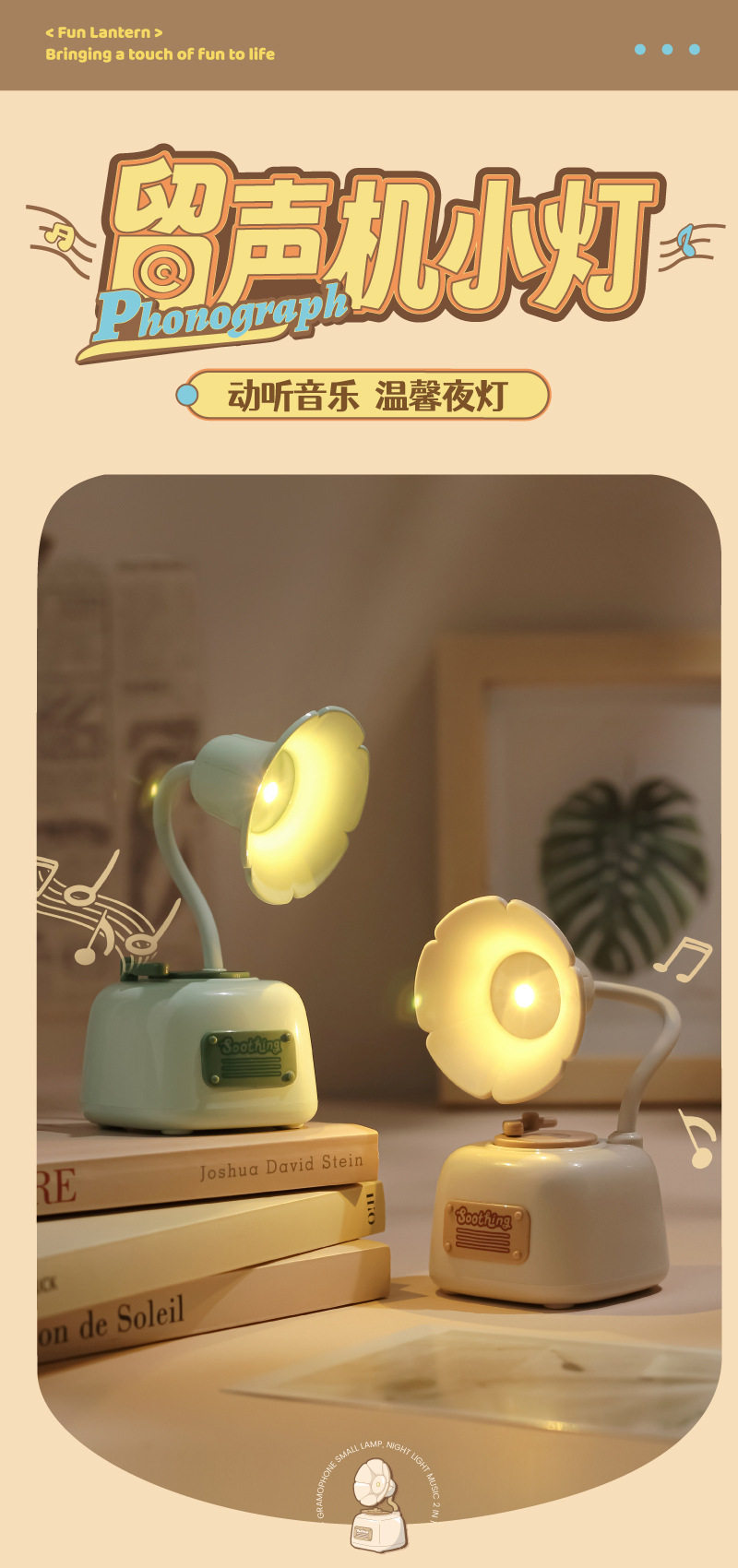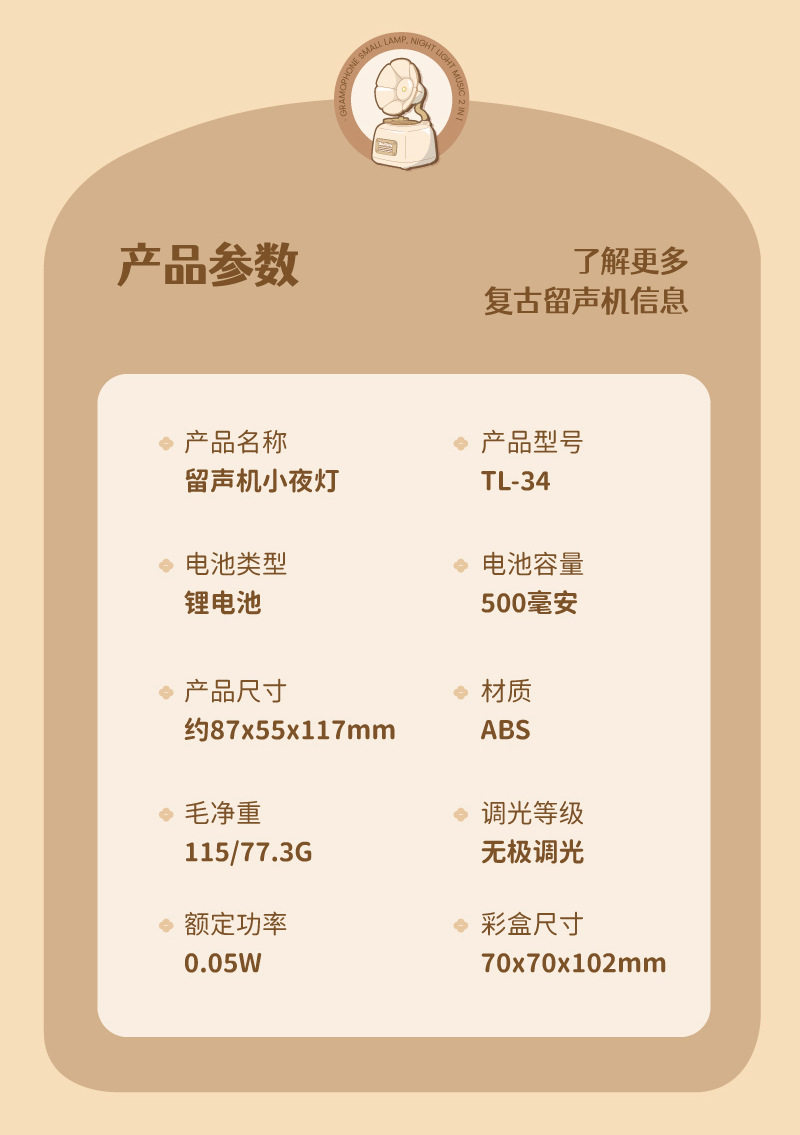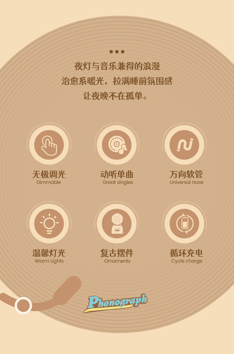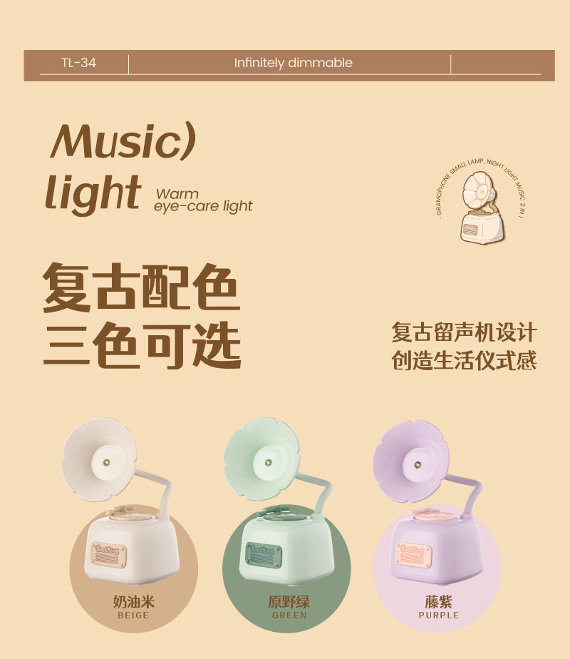 Cute gramophone mini night light usb rechargeable music bedside eye protection desk lamp girl birthday gift wholesale