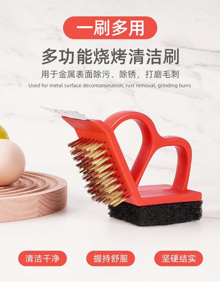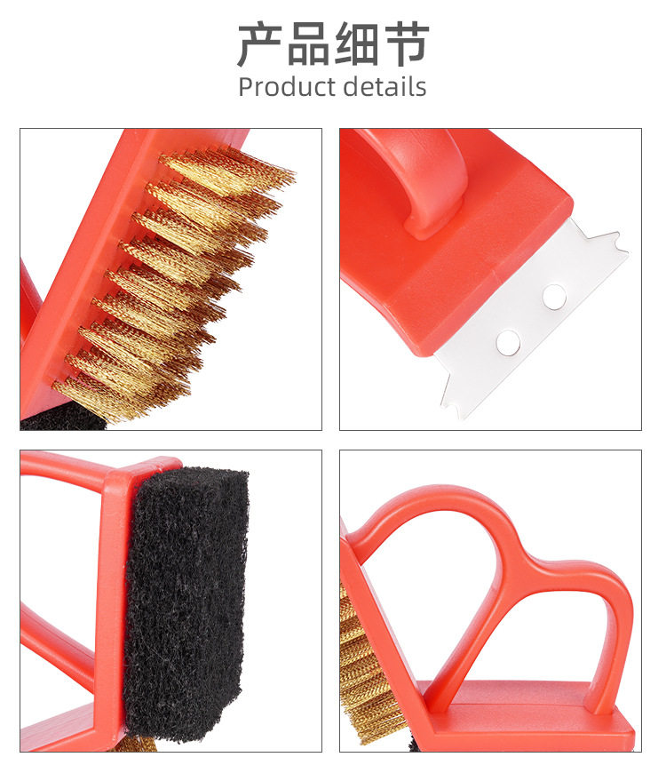 Barbecue net cleaning brush stainless steel iron 3-in-1 wire steel wire brush special cleaning for barbecue grill steel brush