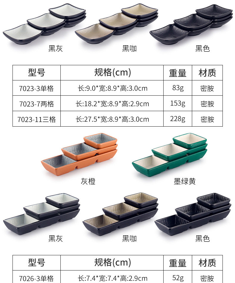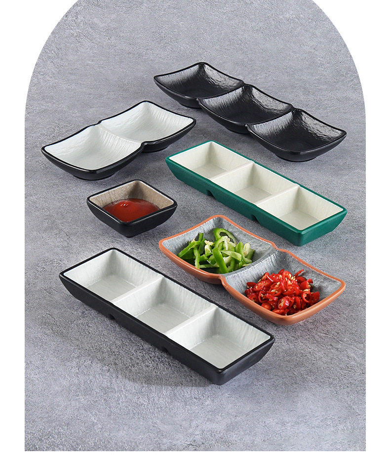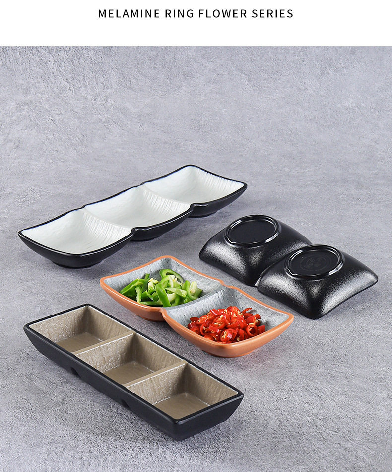 Melamine flavor dish seasoning dipping sauce dish hot pot barbecue shop commercial plastic double grid two or three grid dish small dish dish