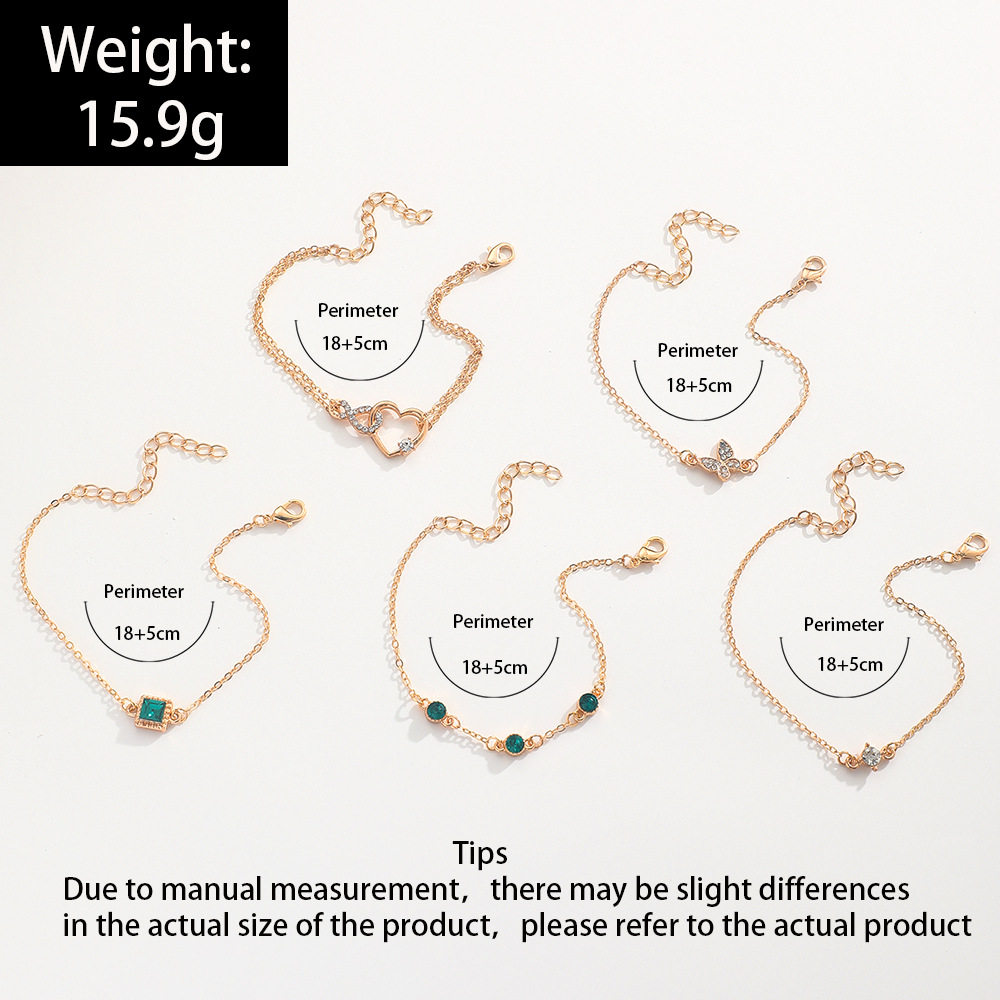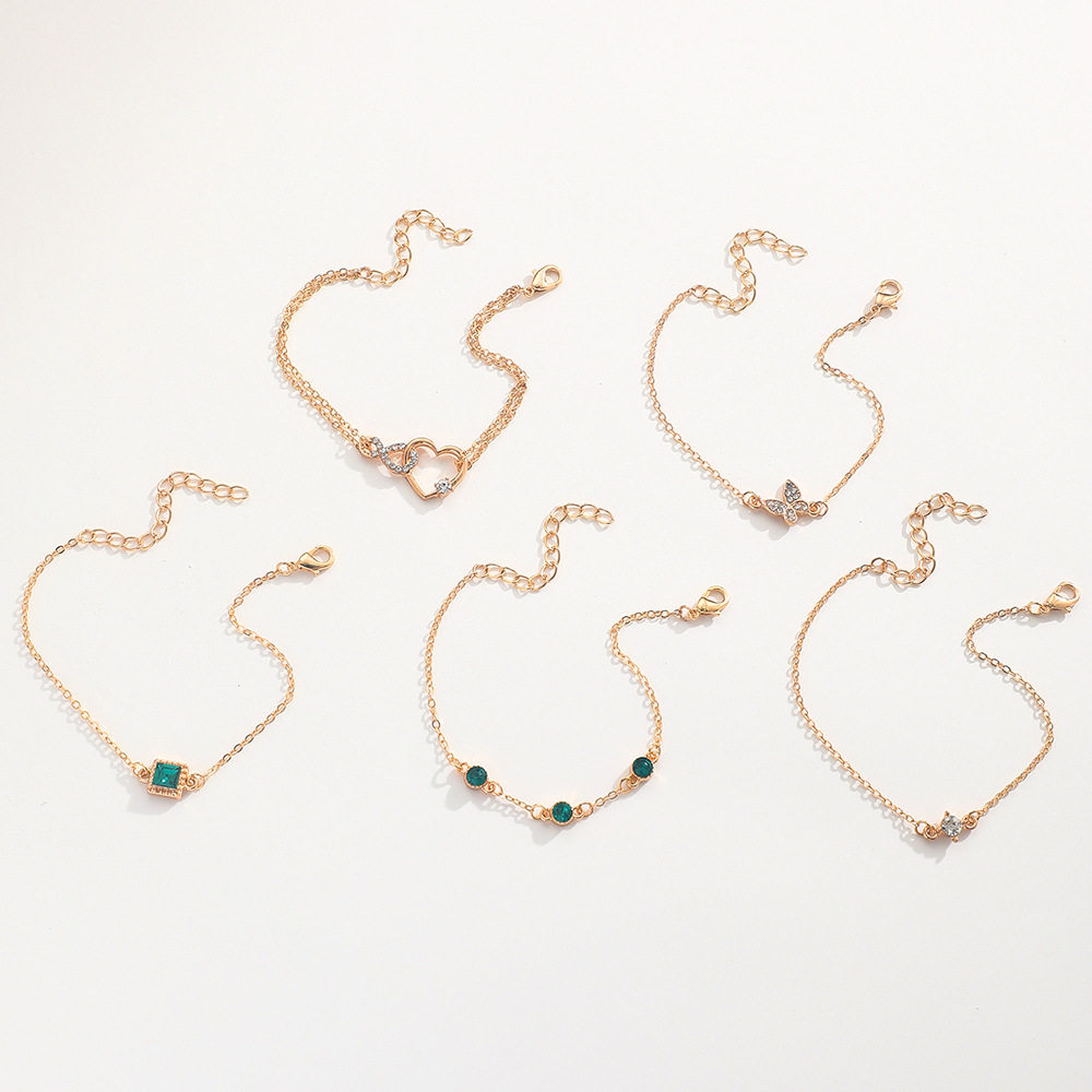 Cross-border New European and American Bracelet Ins Retro Green Diamond Square Bracelet Diamond Butterfly Love Bracelet 5-piece Set