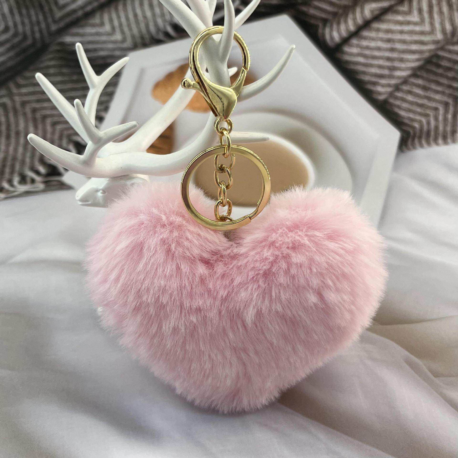 Hot Selling Plush Peach heart keychain love hair ball keychain pendant ladies bags car ornaments wholesale