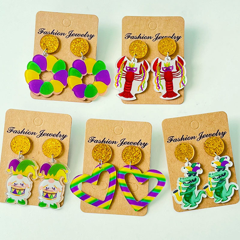 Cross-border Amazon Carnival crocodile lobster love holiday color matching earrings cute glitter acrylic earrings