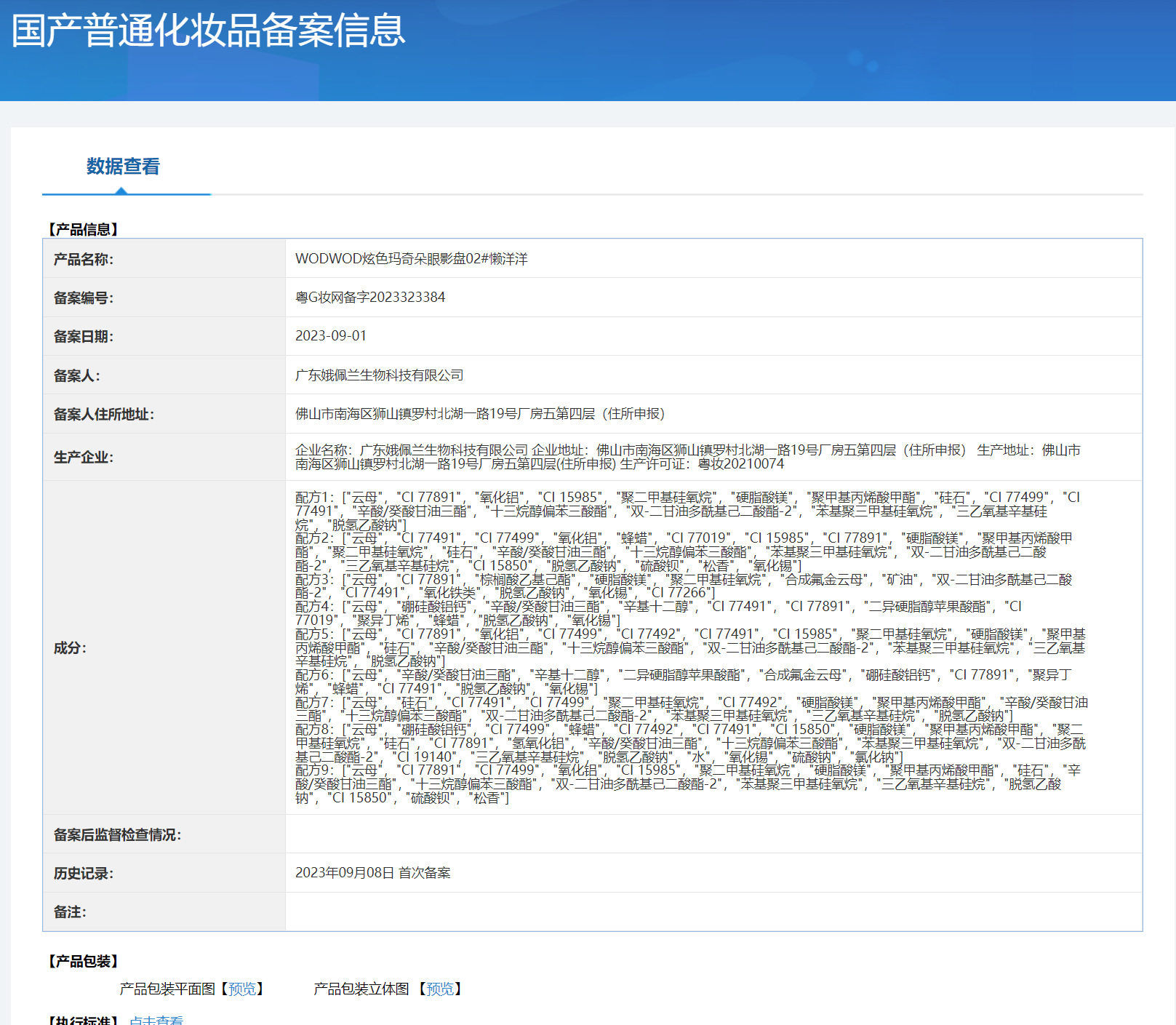 | Non-cosmetics filing certificate number | Guangdong g makeup net preparation word 2023323383 |