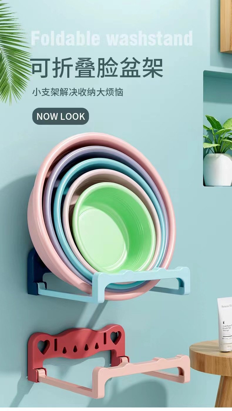 Wholesale foldable wall-mounted washbasin rack kitchen bathroom punch-free storage rack bathroom toilet bath washbasin rack