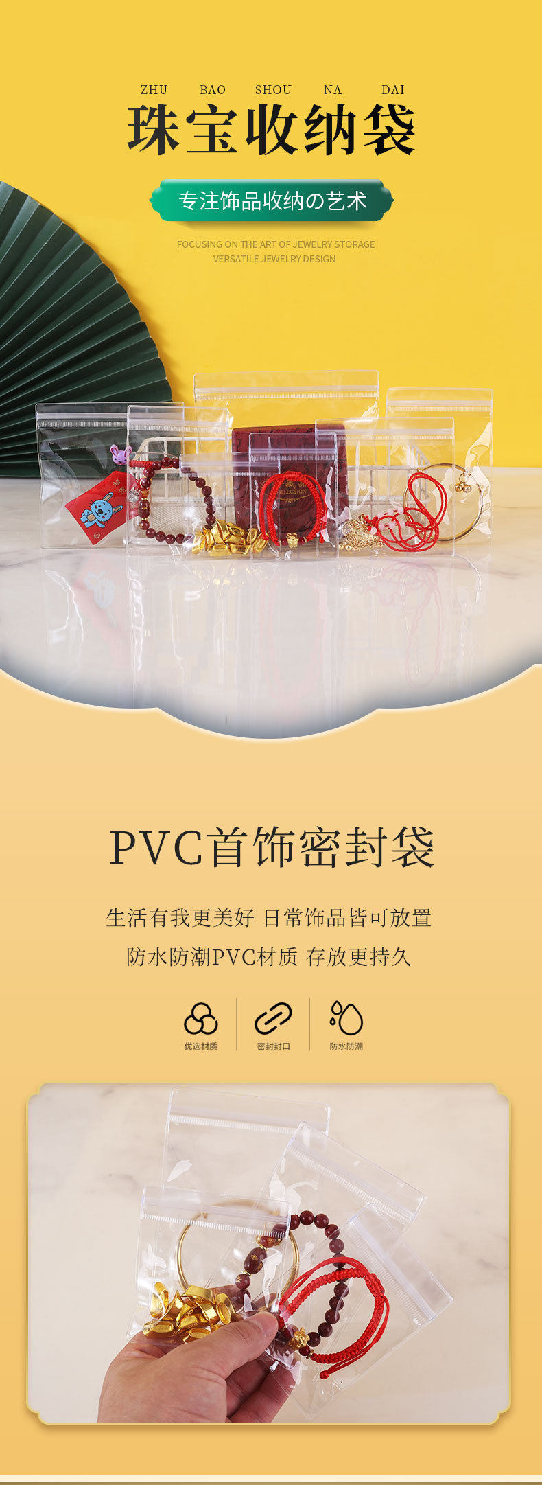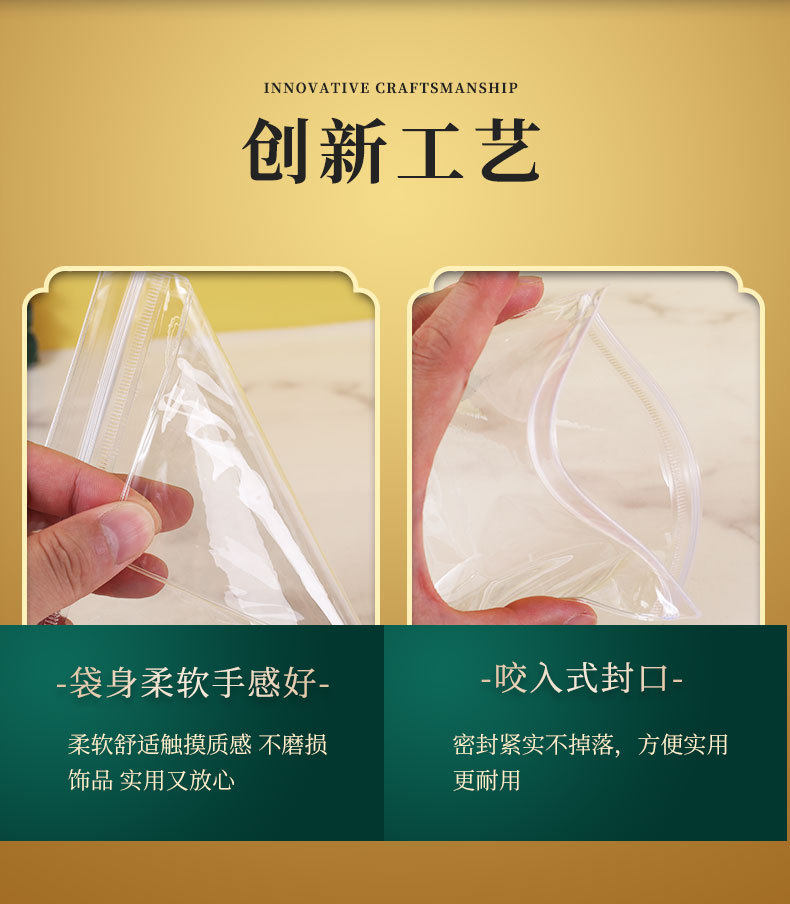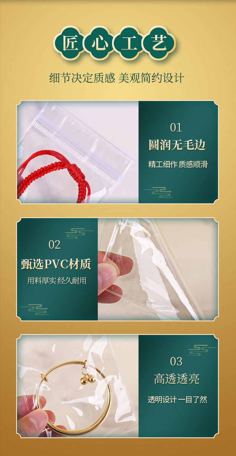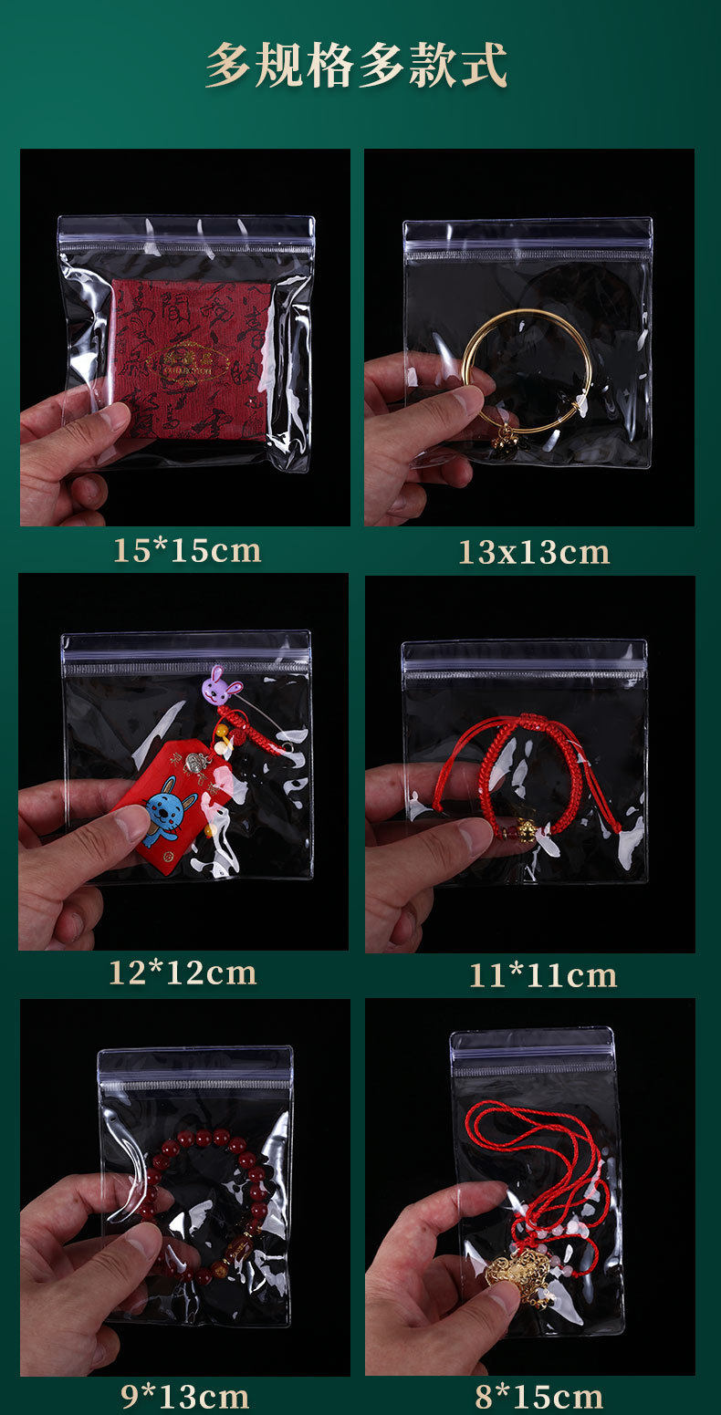 Thick transparent PVC earrings jewelry storage sealed bag pinch music self-sealing bag Wenwan bracelet self-sealing packaging bag
