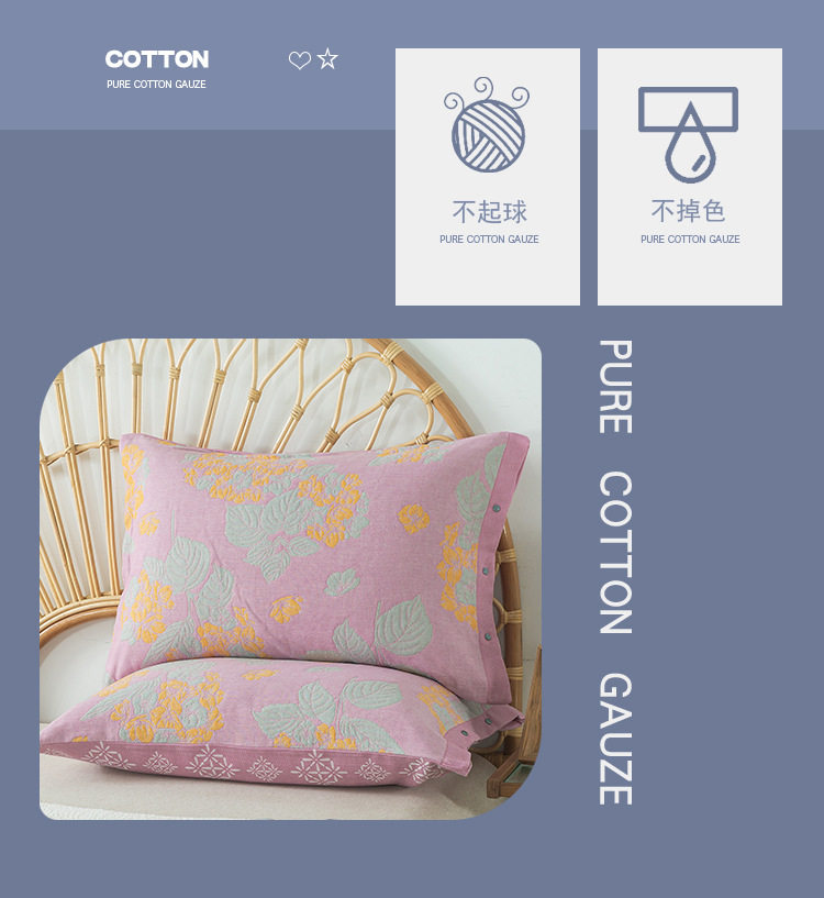 One-piece drop-down cotton gauze pillowcase 48*74 cotton household adult sweat-absorbing pillowcase