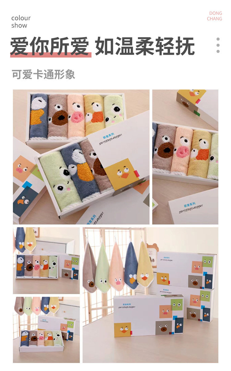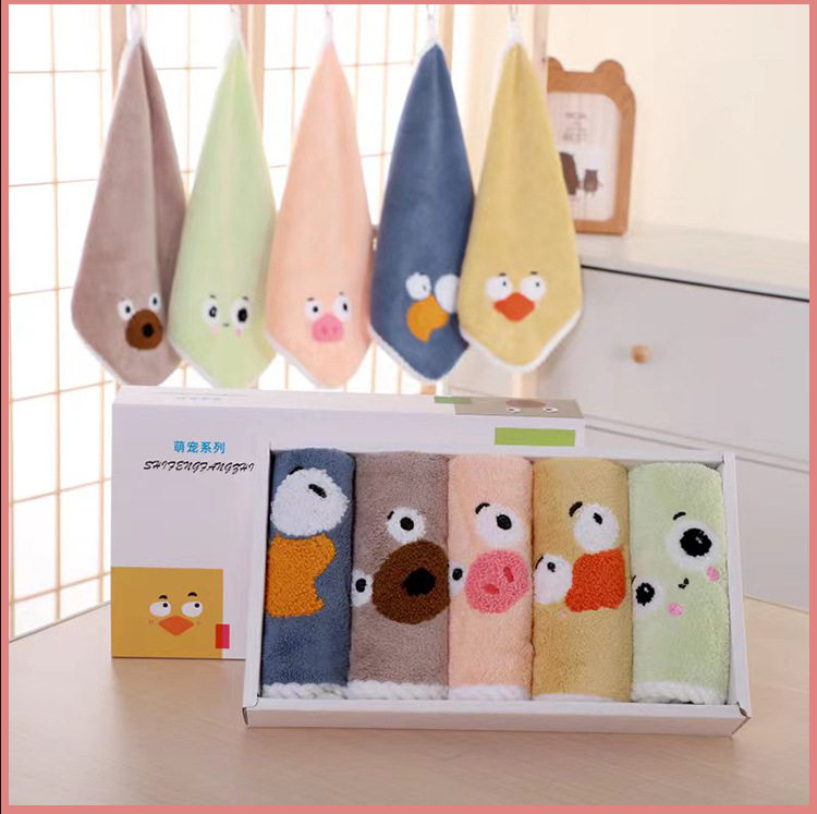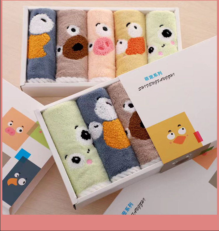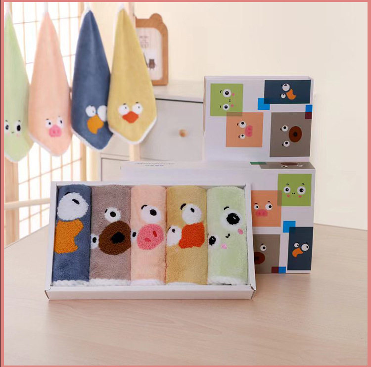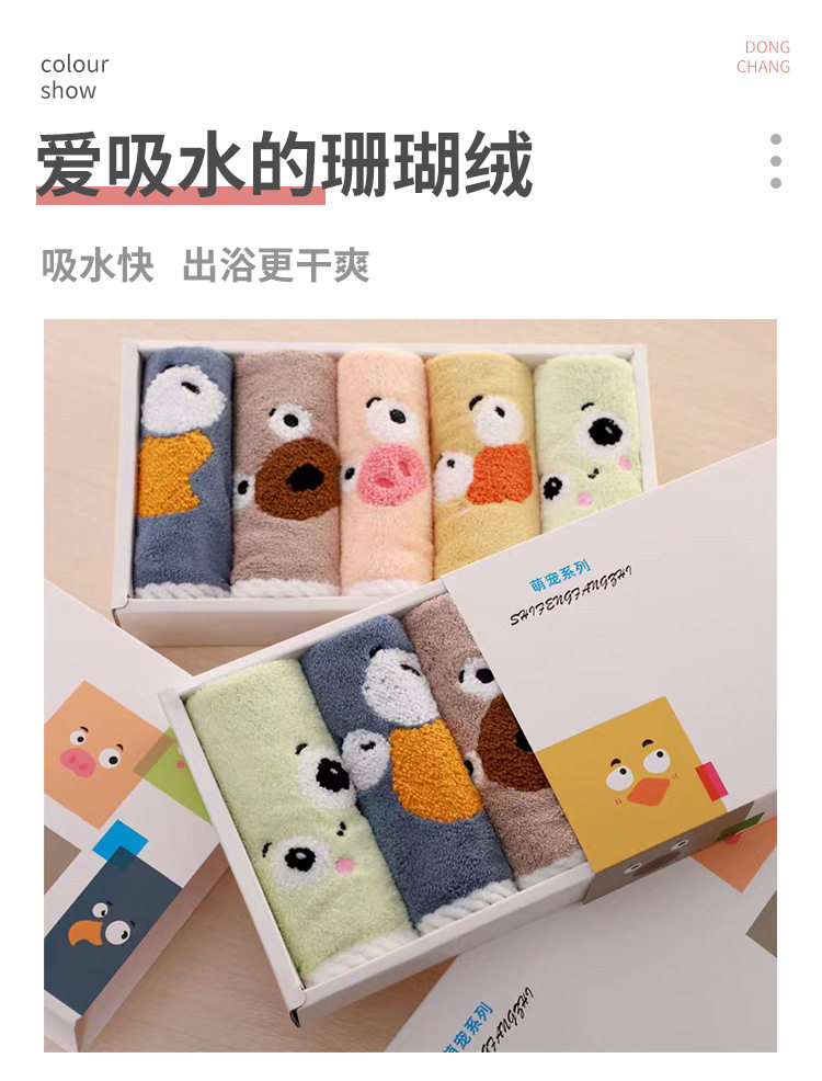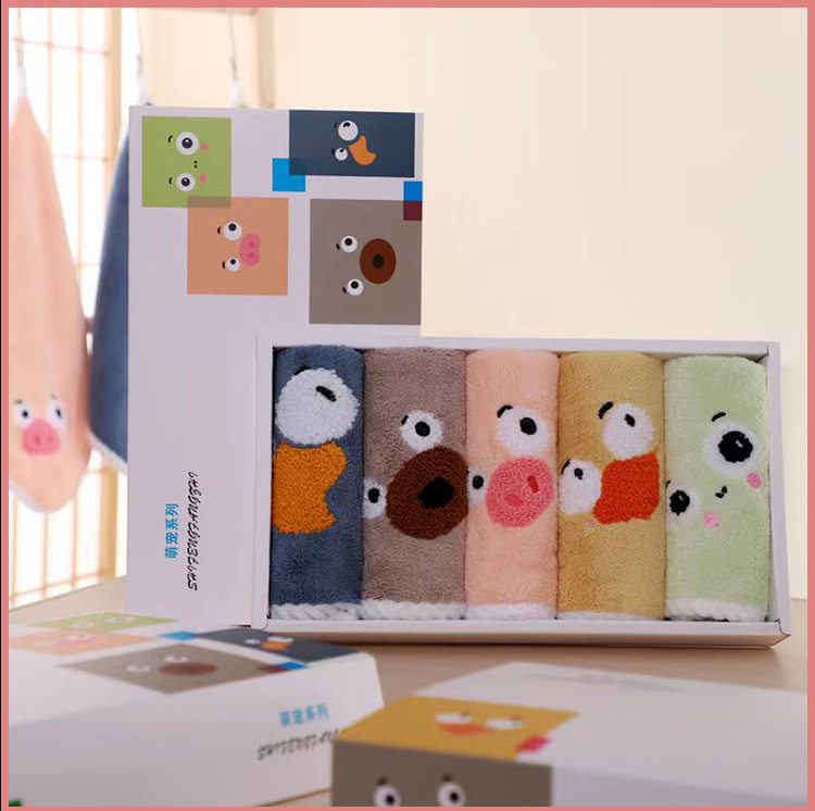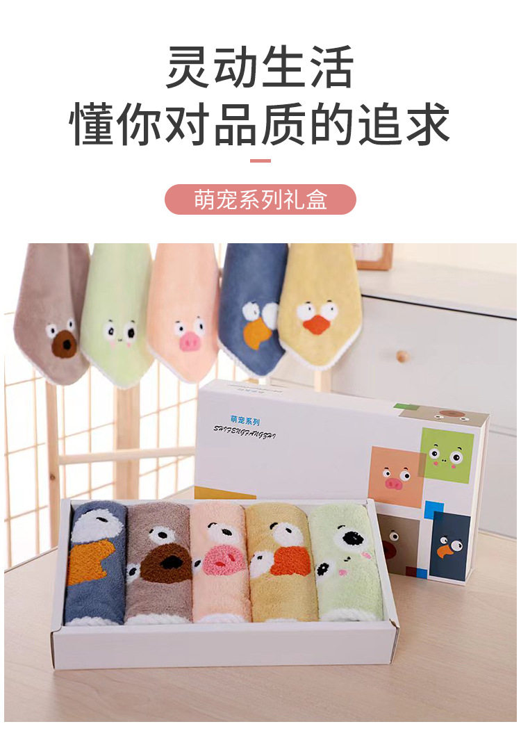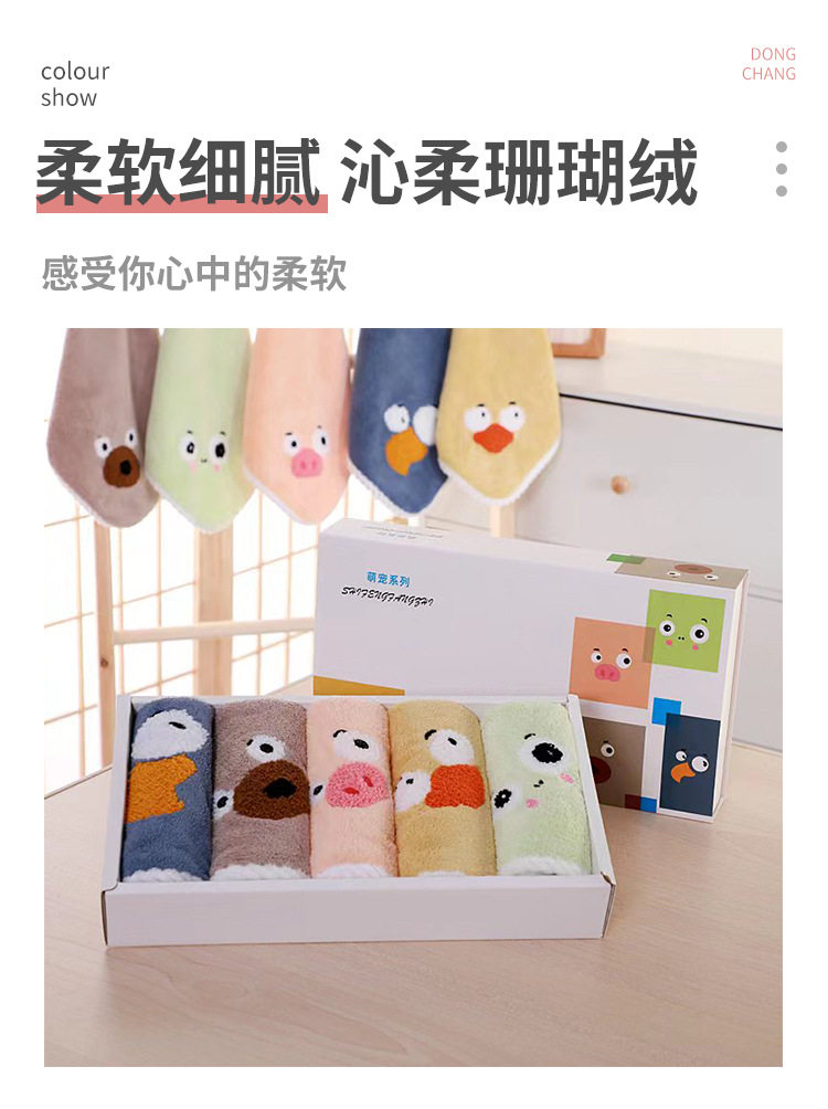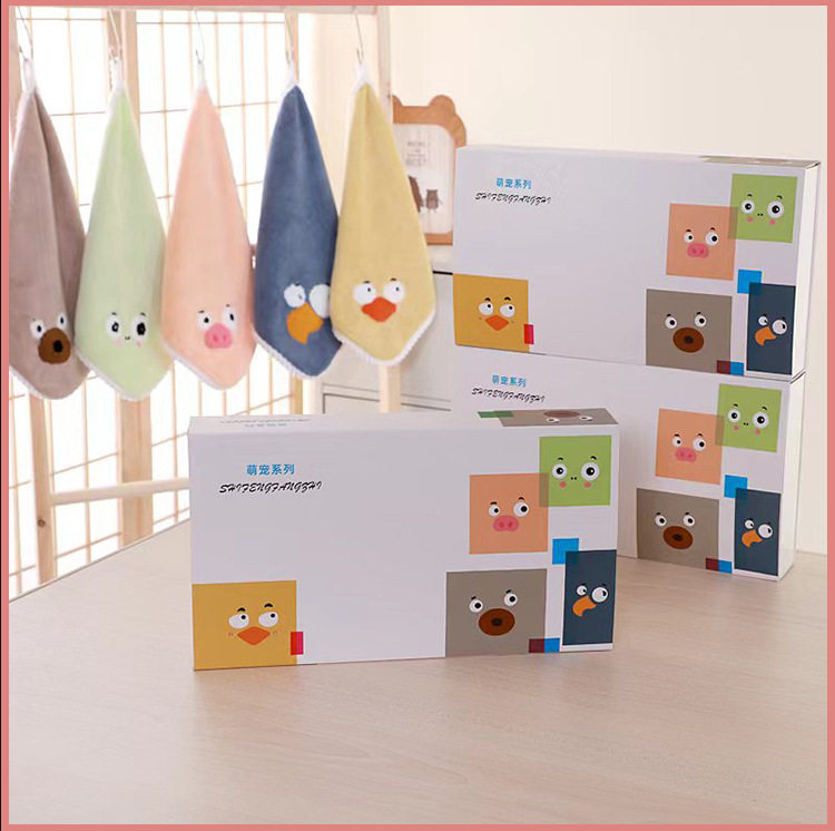 New coral velvet cartoon square towel gift box baby thickened absorbent towel gift box manufacturer square towel suit wholesale