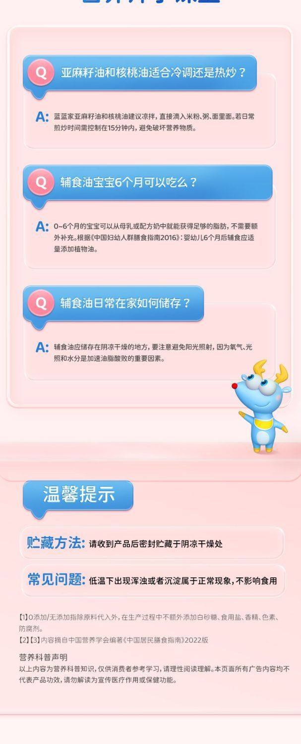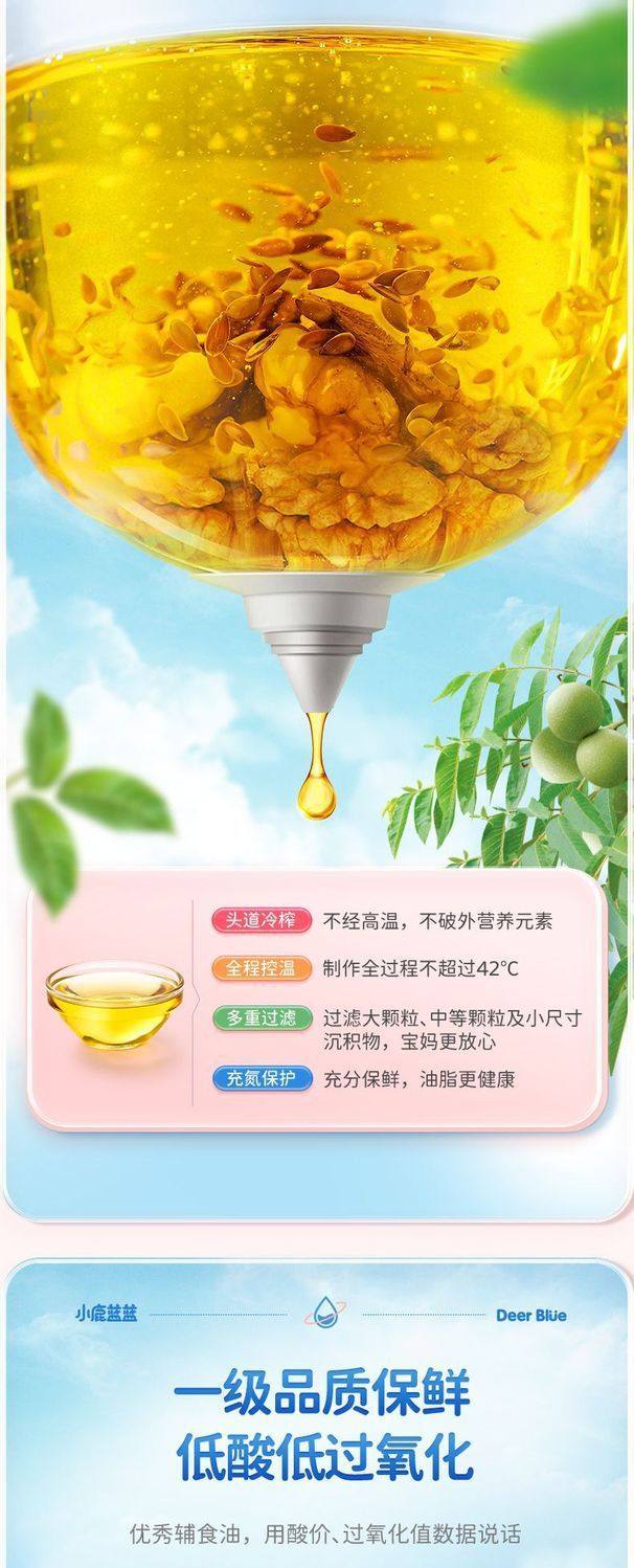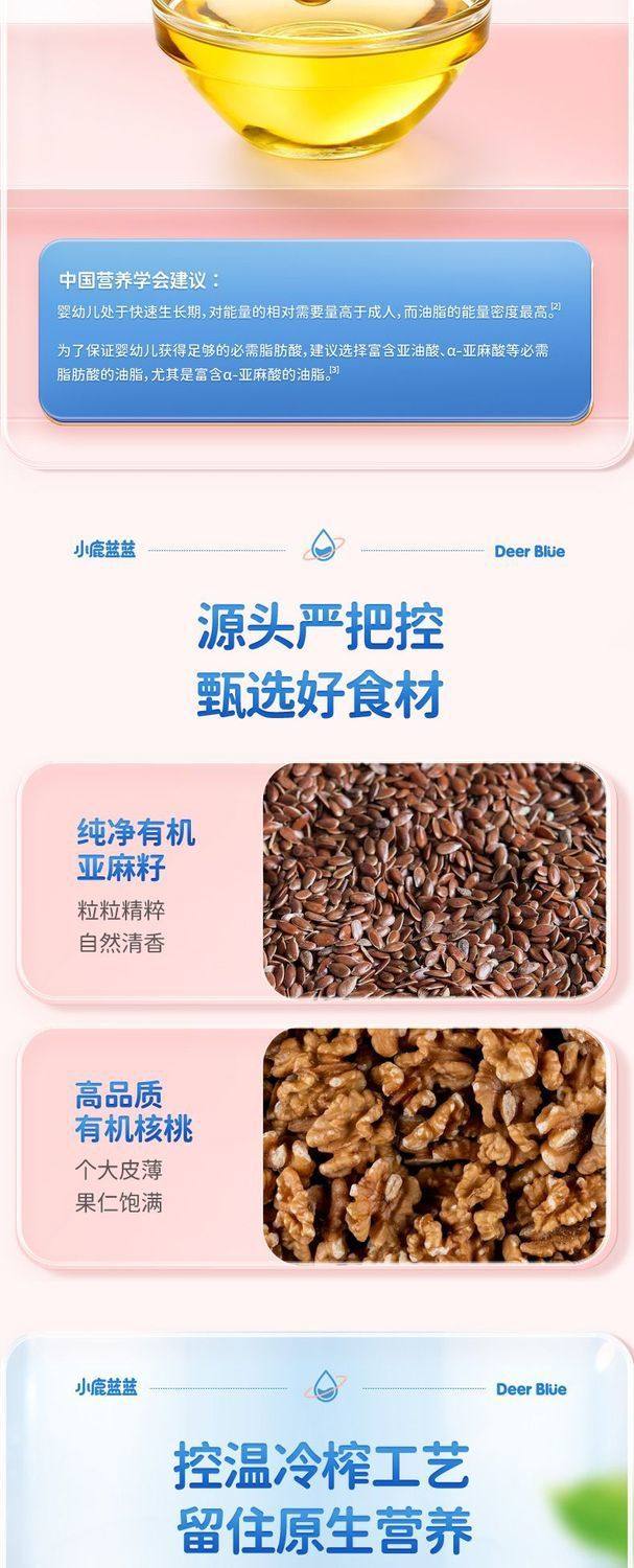 Official flag genuine goods deer blue blue seasoning oil cooking oil organic flax seed walnut oil for baby food supplement spectrum