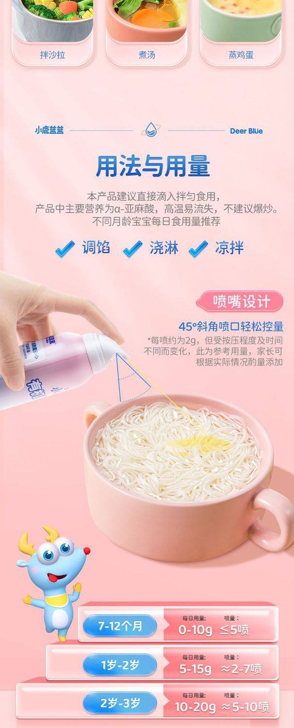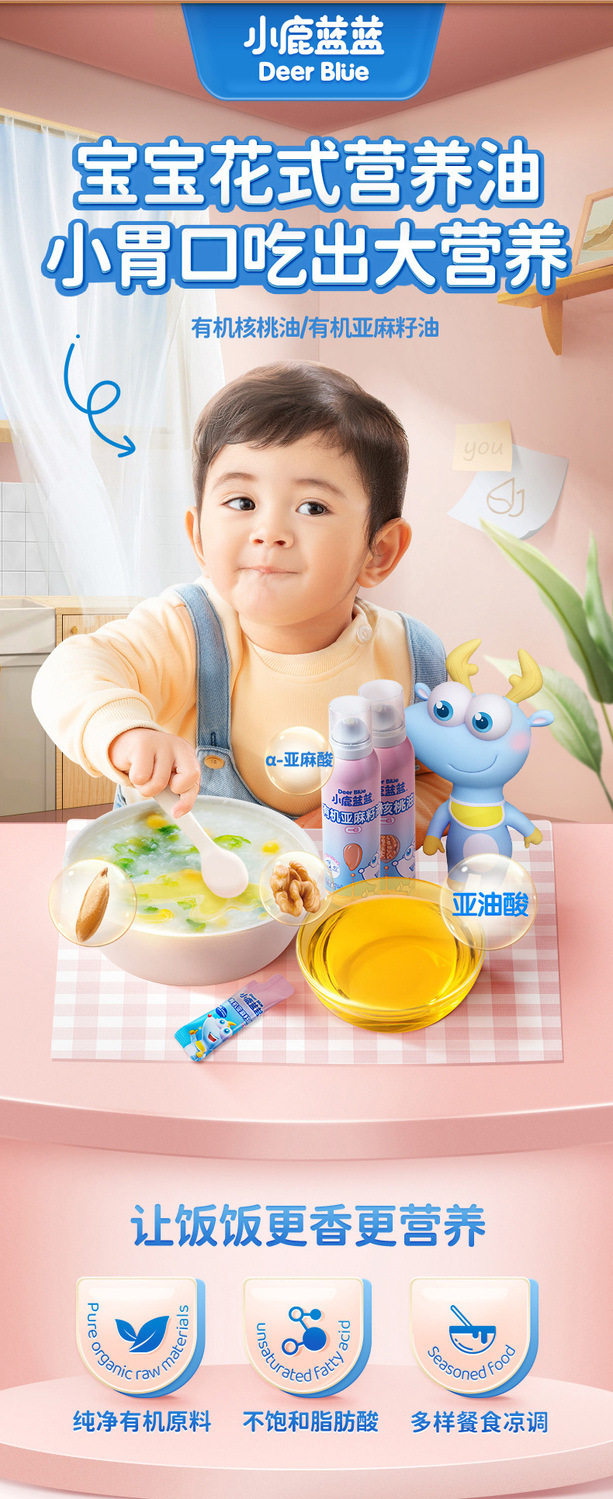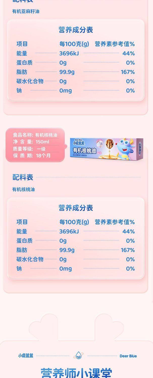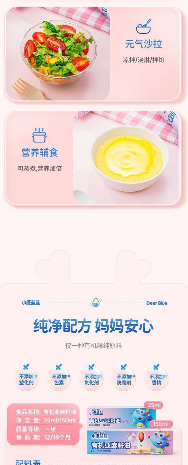 Official flag genuine goods deer blue blue seasoning oil cooking oil organic flax seed walnut oil for baby food supplement spectrum
