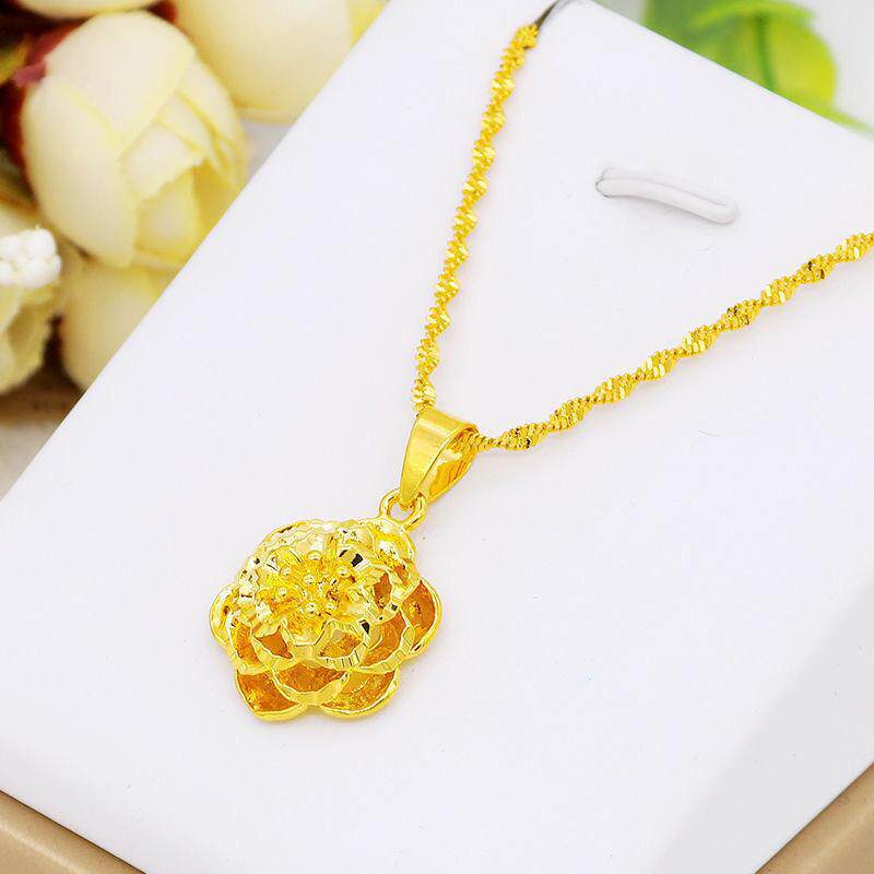 Xiaohongshu Style Rich Flower Pendant Clavicle Chain Love Rose Necklace Gold-Plated Clover Necklace Wholesale Supply