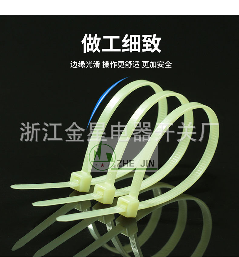 | Specification | 3*60*1.9mm wide (1000 pieces/pack) (-20 ° C — +180 ° C),3*80*2mm wide (1000 pieces/pack),3*80*2.5mm wide (1000 pieces/pack),3*100*2.5mm wide (1000 pieces/pack),3*120*2.2mm wide (1000 pieces/pack),4*150*3.6mm wide (500 pieces/pack),4*200*3.6mm wide (500 pieces/pack),4*300*3.6mm wide (250 pieces/pack),5*200*4.8mm wide (500 pieces/pack),5*250*4.8mm wide (250 pieces/pack),5*300*4.8mm wide (250 pieces/pack),5*750*4.8mm wide (100 pieces/pack) (-20 ℃ +1,8*300*7.2mm wide blue (250 pieces/pack)) (resistant,4*200*3.6mm wide black (500 pieces/pack),8*450*5.5mm wide black (250 pieces/pack) (low temperature resistance -40 ° -85 ° ) |