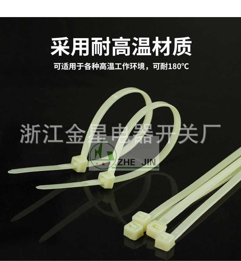 High Temperature Resistant Nylon Cable Ties Wholesale 180 Degrees Low Temperature Resistant-40 Degrees Plastic Flame Retardant Binding Tape Automotive Flame Retardant