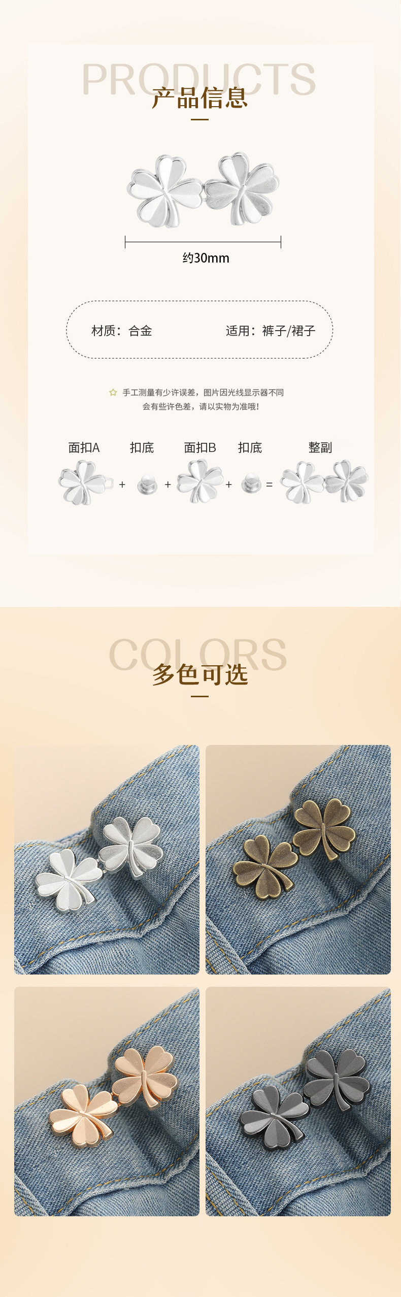 Four-Leaf Clover waist buckle buckle detachable nail-free seam waist button jeans waist big change small waist slimming artifact