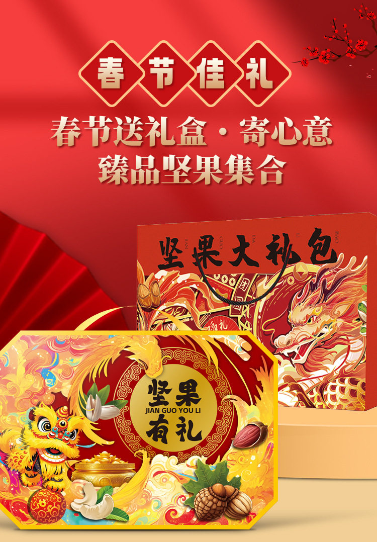 New Year Nuts Gift Pack Dried Fruit Snacks New Year Gifts Spring Festival Gifts for Relatives and Elders Group Buying Gift Boxes