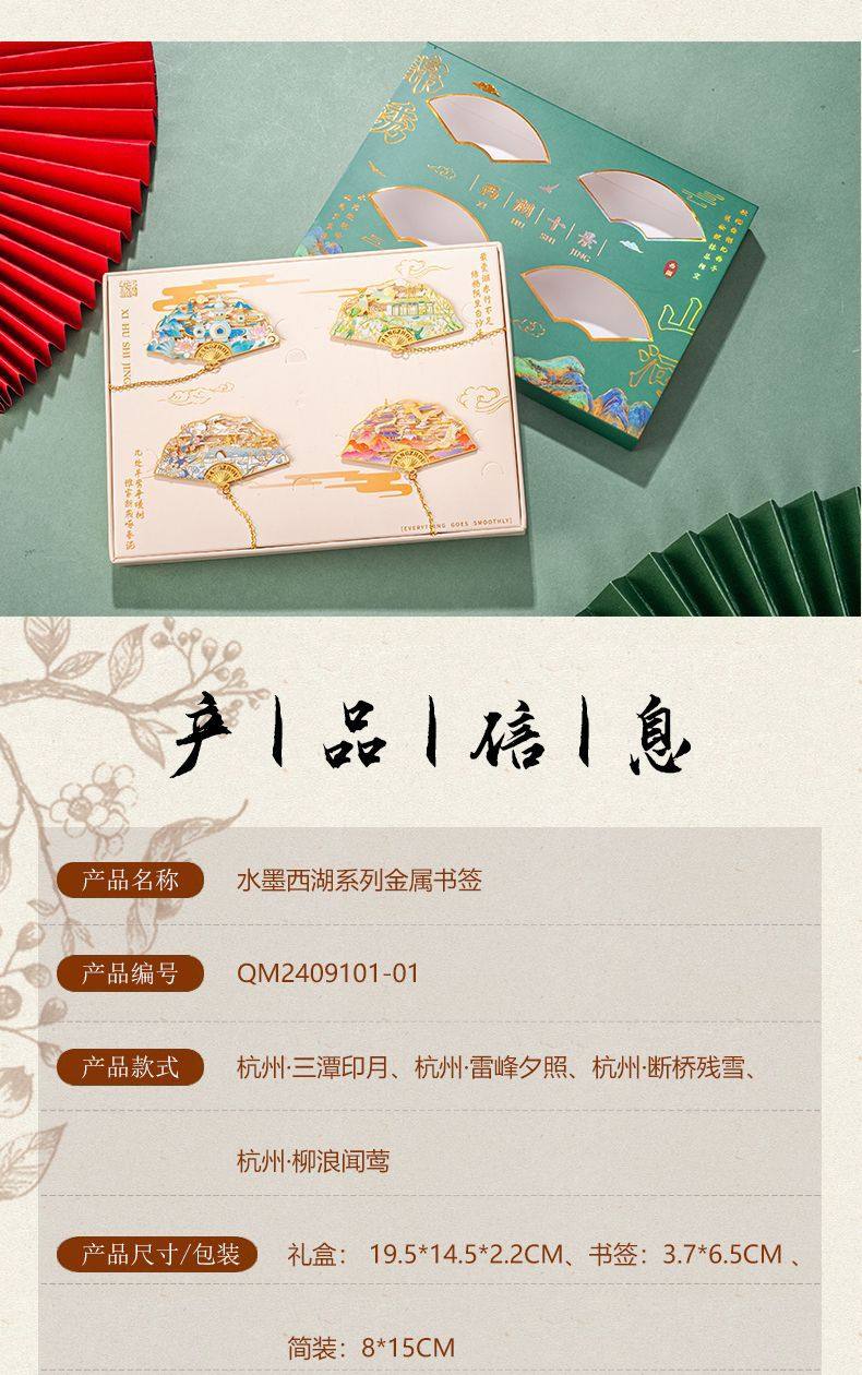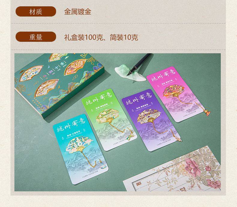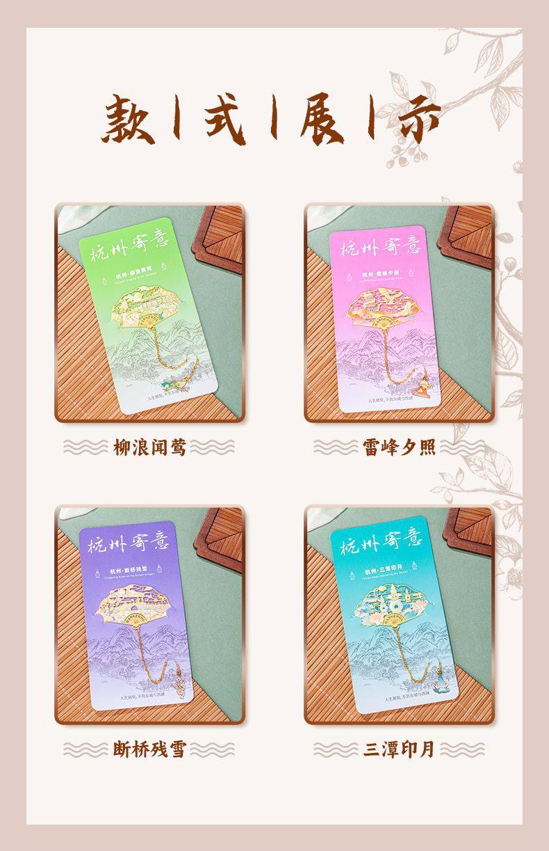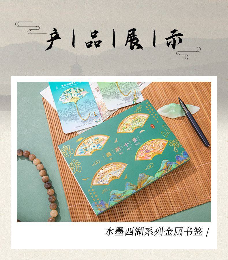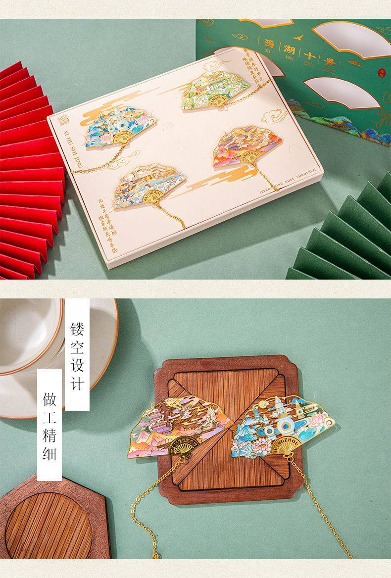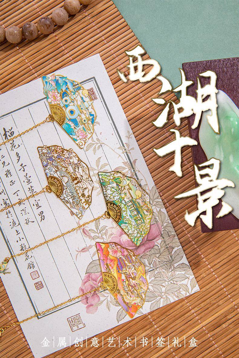 Hangzhou Cultural Travel Metal Bookmark Attractions Commemorate Classical Chinese Style Hollow West Lake Ten Scenery Landmark Cultural Creation Gift Box