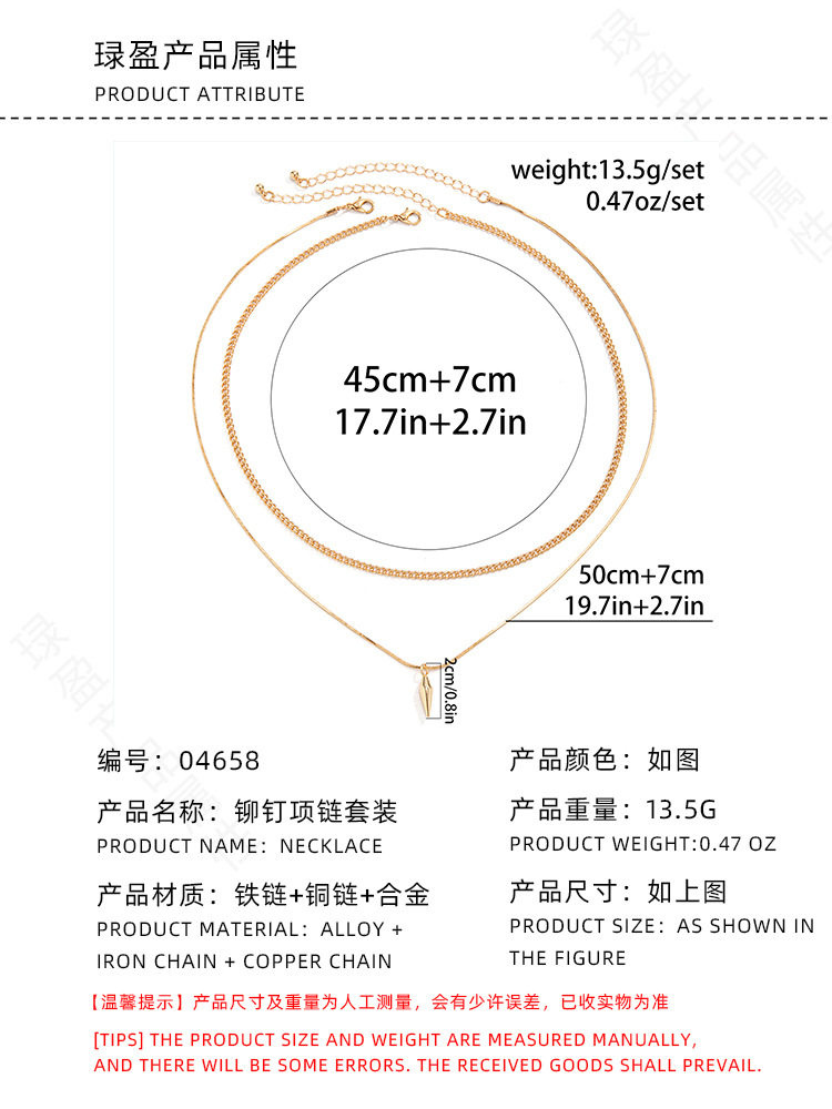 European and American Niche Rivet Necklace Jewelry Men's Trendy Hip-Hop Stylish Long Sweater Chain Cross-Border Men's Clavicle Chain Accessories