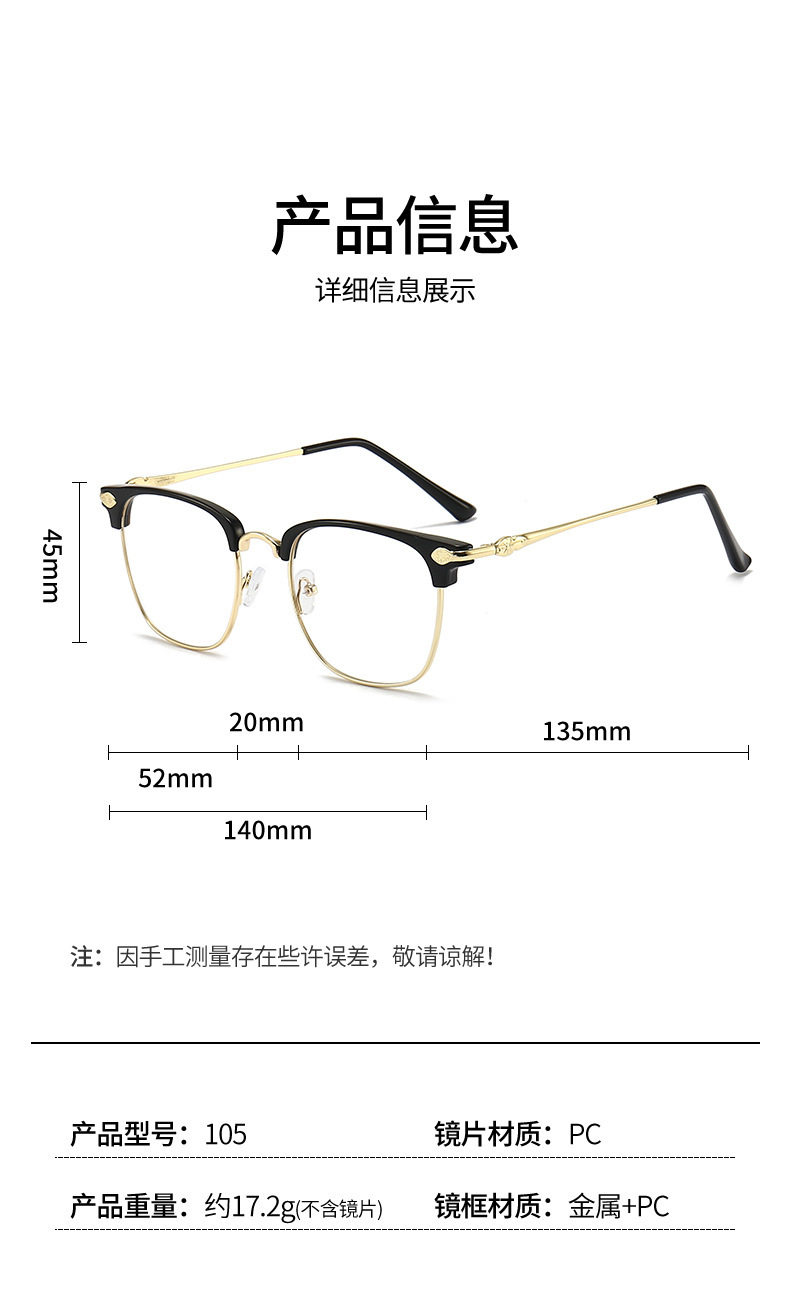 Explosive half-frame eyebrows anti-blue light discoloration glasses plain light luxury myopia glasses fashion glasses frame manufacturers wholesale