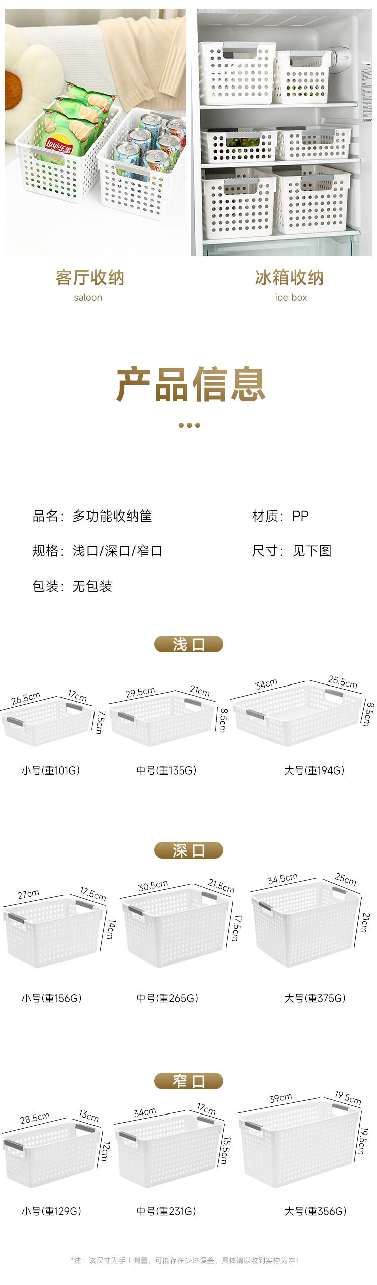 | Color | Shallow mouth small size 26.5*17*7.5cm,Shallow medium size 29.5*21*8.5cm,Shallow mouth large size 34*25.5*8.5cm,Deep mouth small size 27*17.5*14cm,Deep mouth large size 34.5*25*21cm,Narrow small size 28.5*13*12cm,Narrow medium size 34*17*15.5cm,Narrow large size 39*19.5*19.5cm |