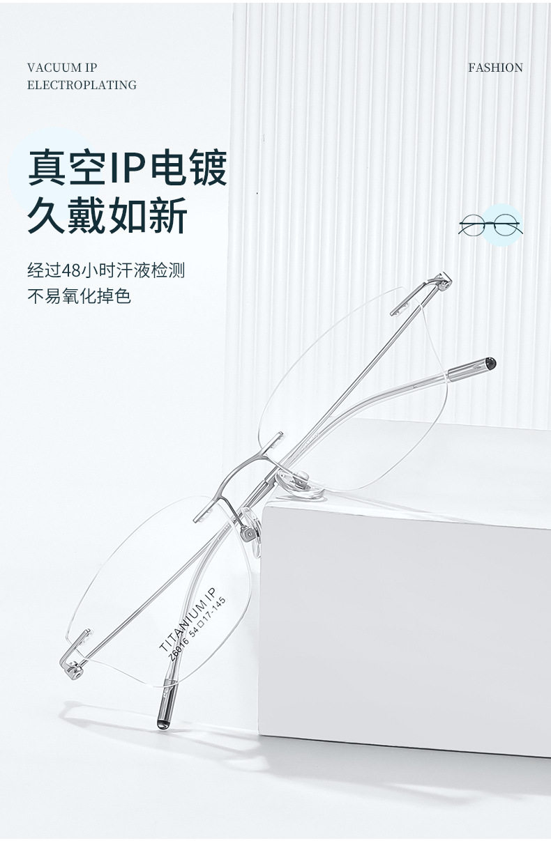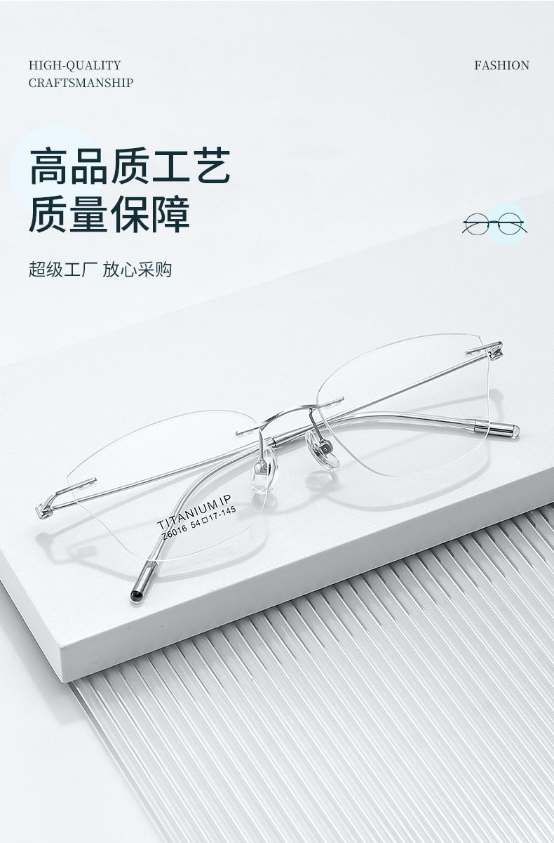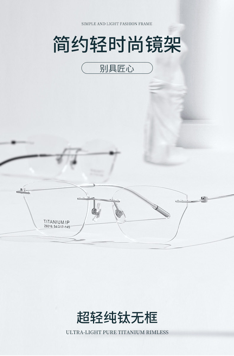 Retro special-shaped frameless glasses Danyang 6016 frameless pure titanium glasses frame ultra-light glasses frame female myopia titanium frame