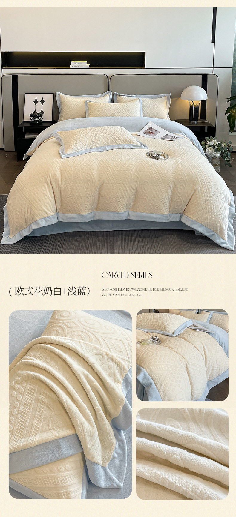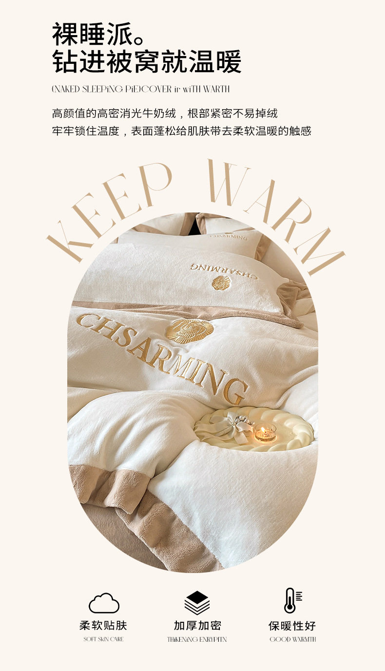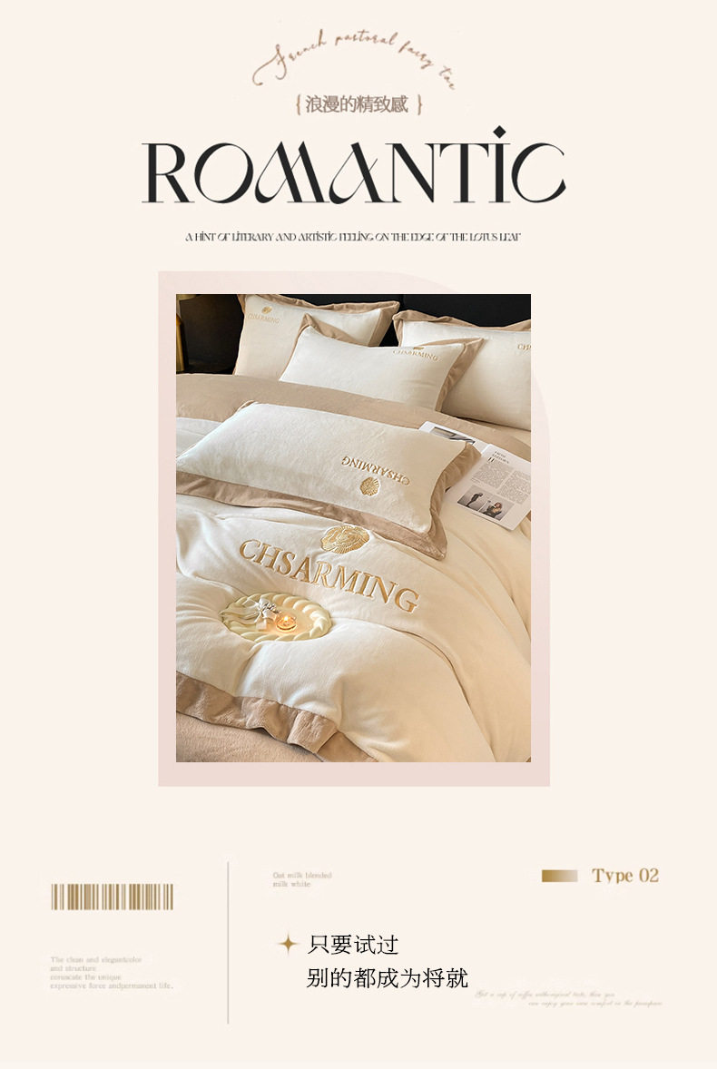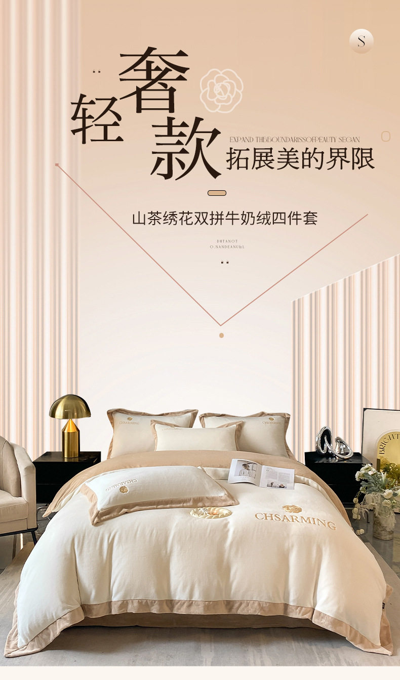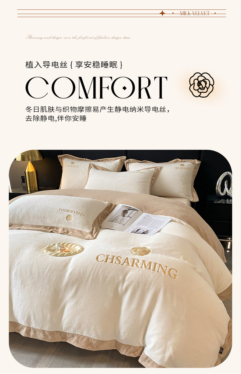 Light luxury style embroidered milk velvet bed four-piece set Winter thickened coral velvet flannel bed sheet quilt cover three-piece set