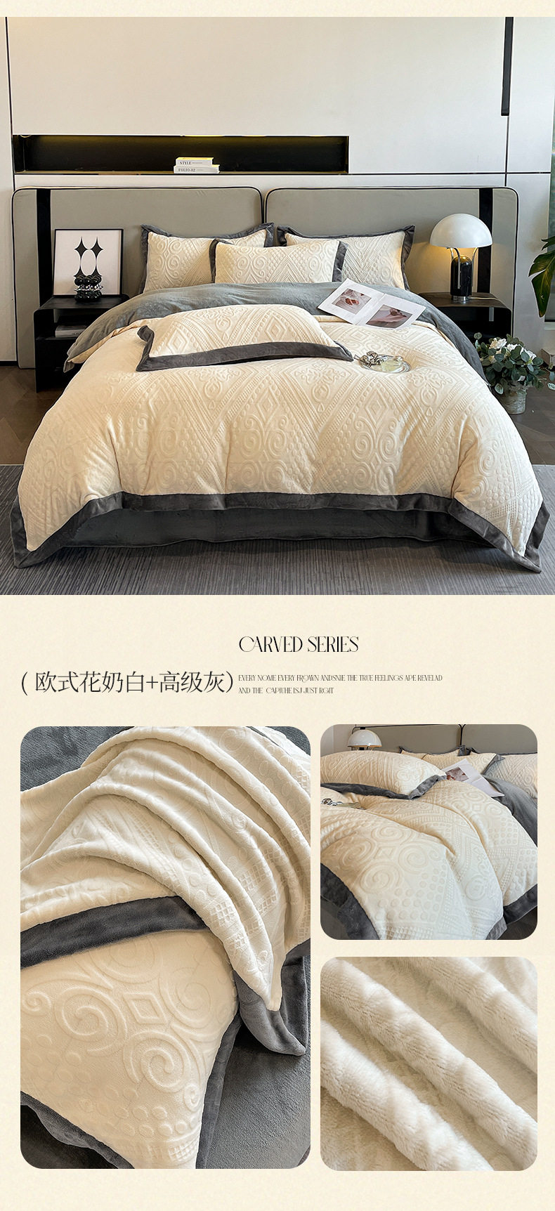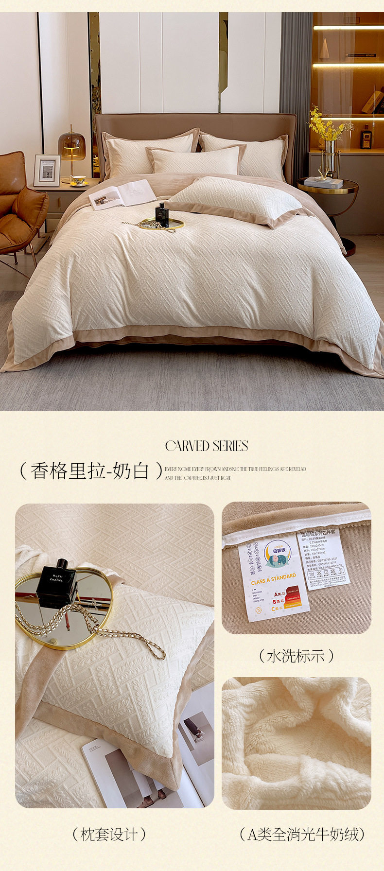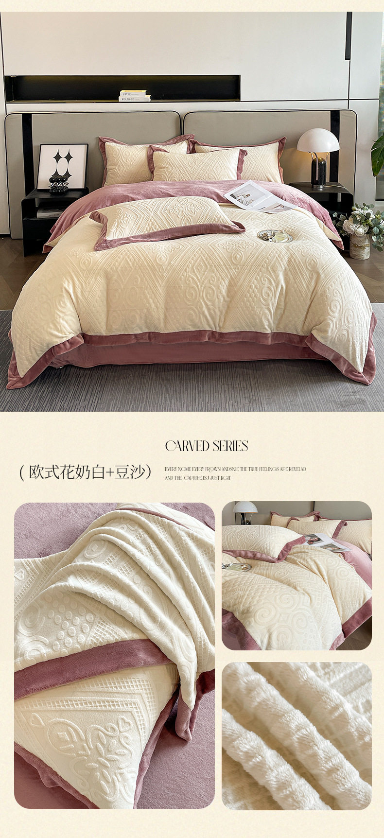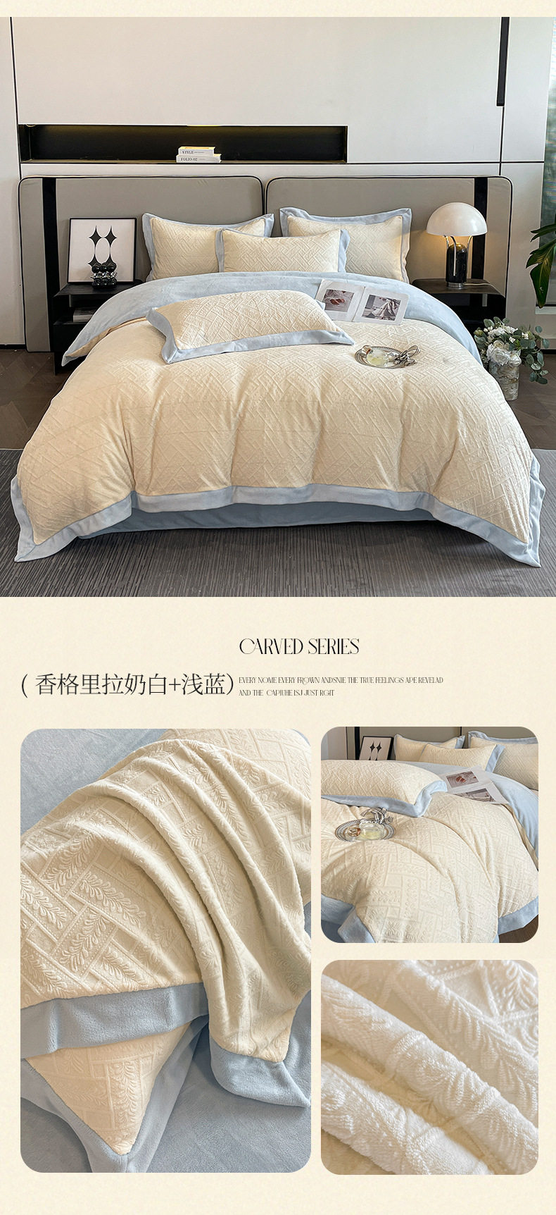 Light luxury style embroidered milk velvet bed four-piece set Winter thickened coral velvet flannel bed sheet quilt cover three-piece set