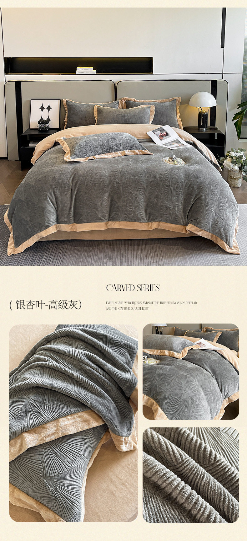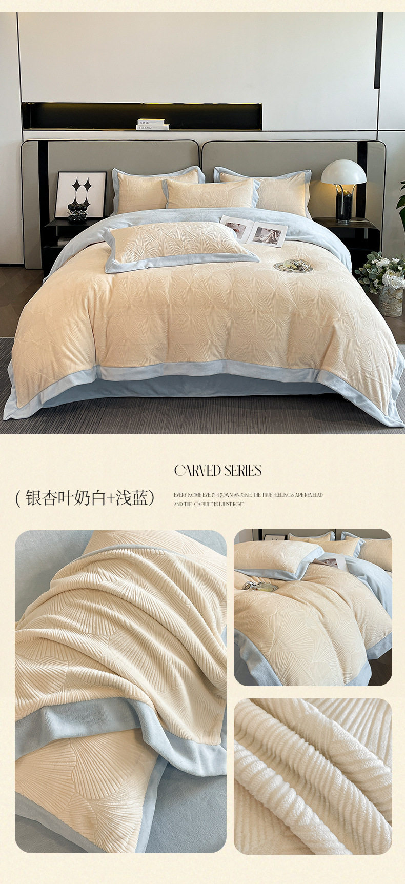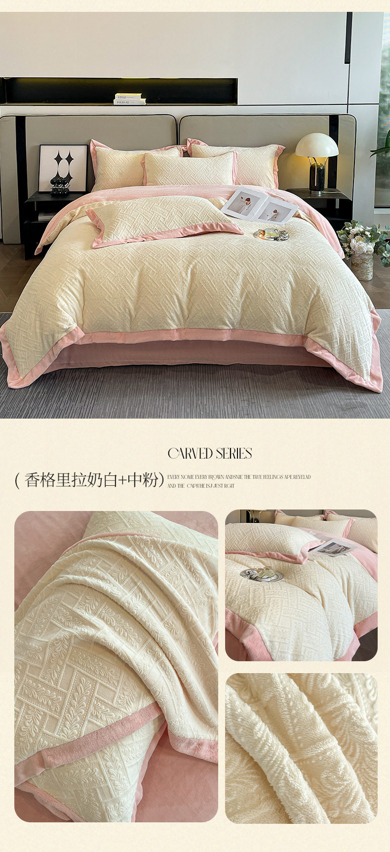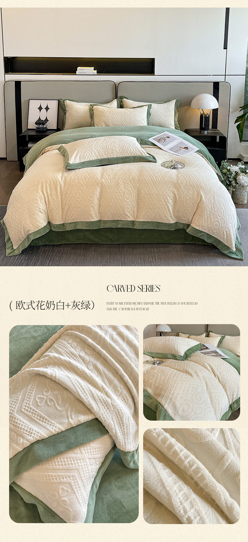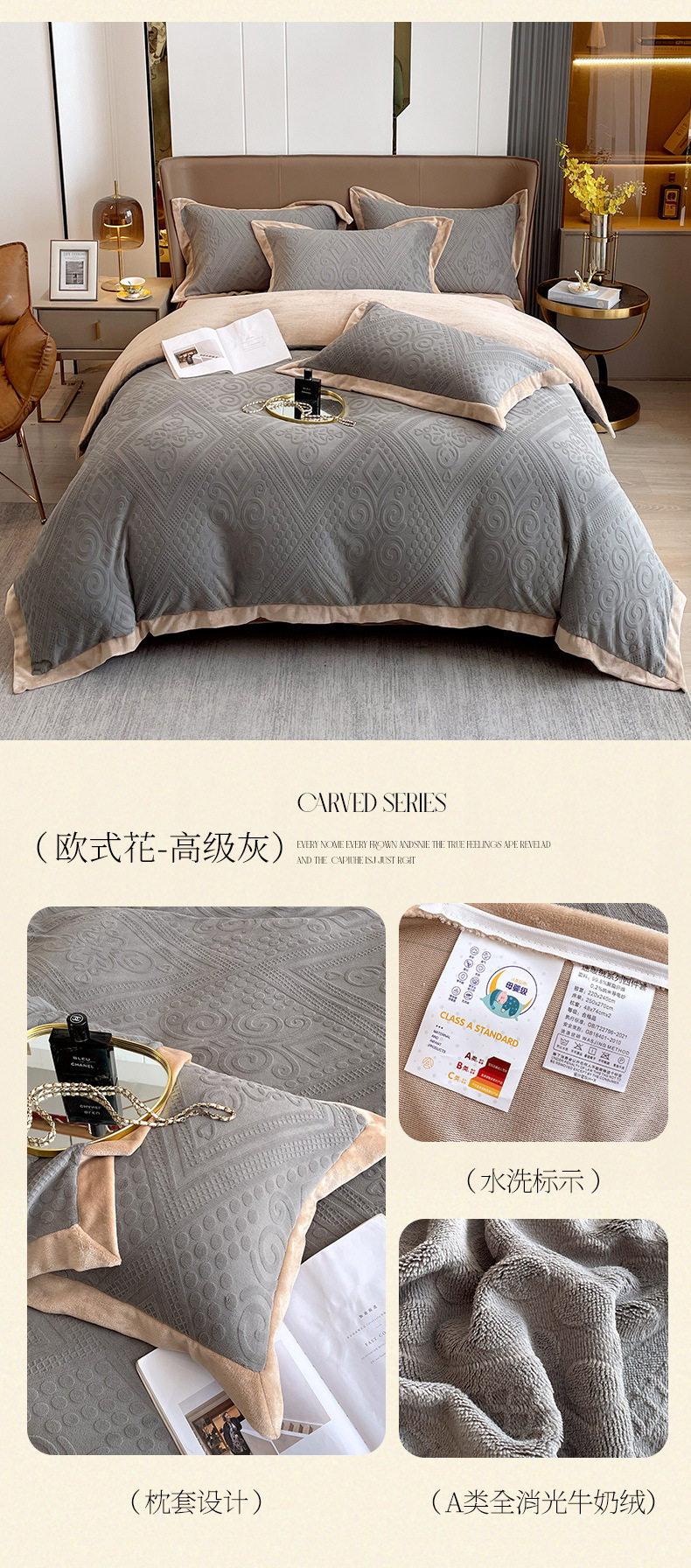 Light luxury style embroidered milk velvet bed four-piece set Winter thickened coral velvet flannel bed sheet quilt cover three-piece set