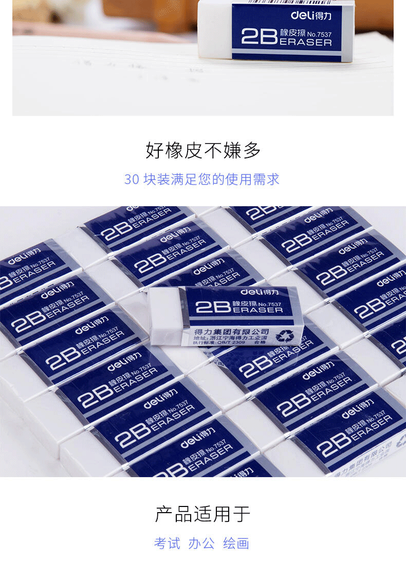 | Specifications | 7536 small size 2B single rubber,7537 large 2B single rubber,7532 small size HB single rubber,7531 large HB single rubber,7536 small size 2B Eraser (45 pieces/box),7537 large 2B Eraser (30 pieces/box),7532 small size HB Eraser (45 pieces/box),7531 large HB Eraser (30 pieces/box) |