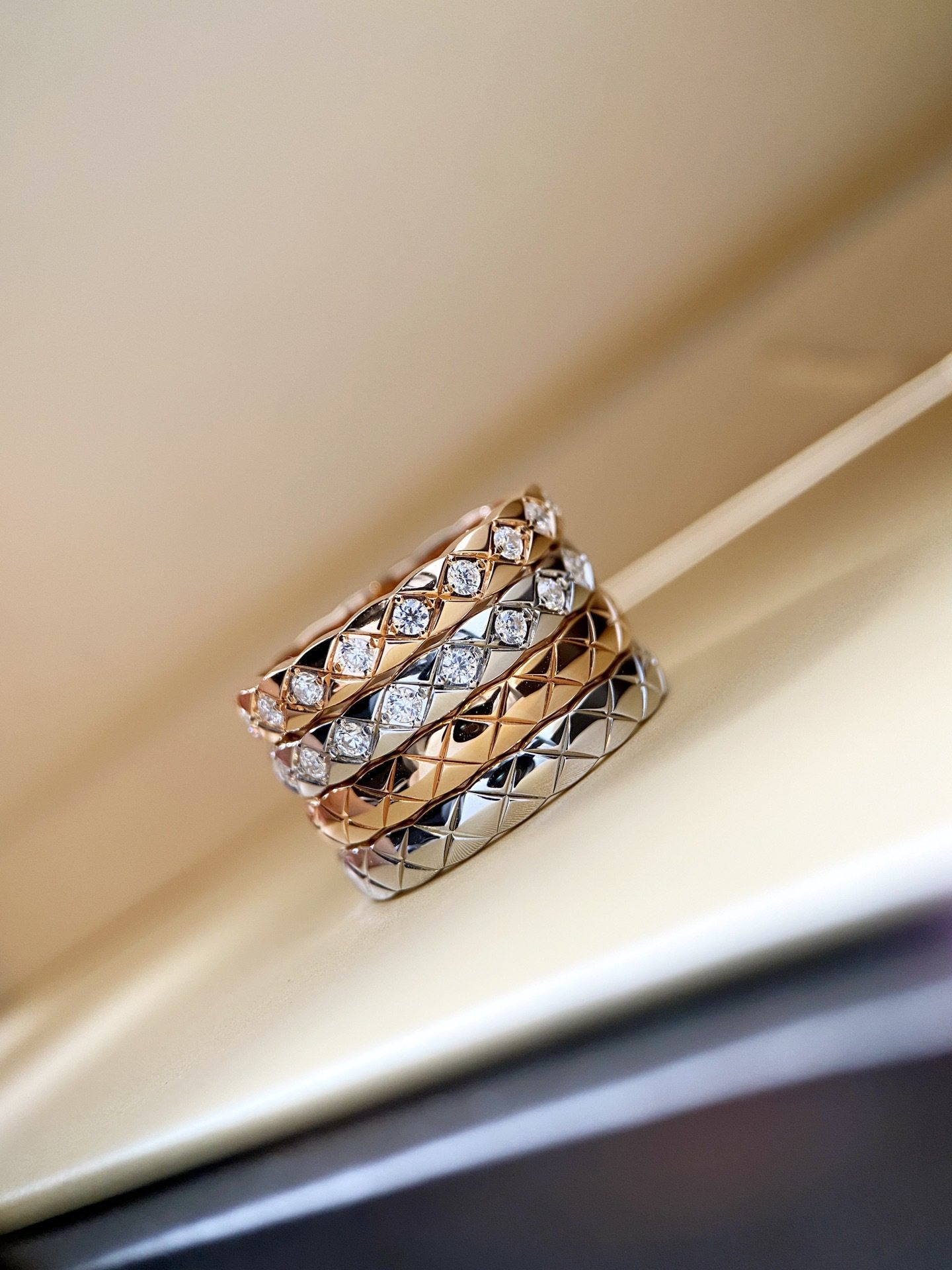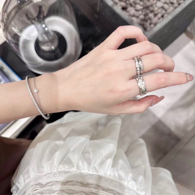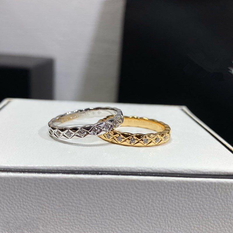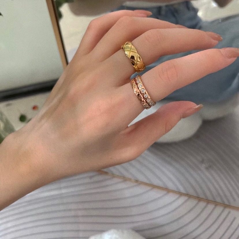 Xiangjia High version narrow version wide version ring plated 18K gold coco rhombus diamond ring CNC carved bracelet